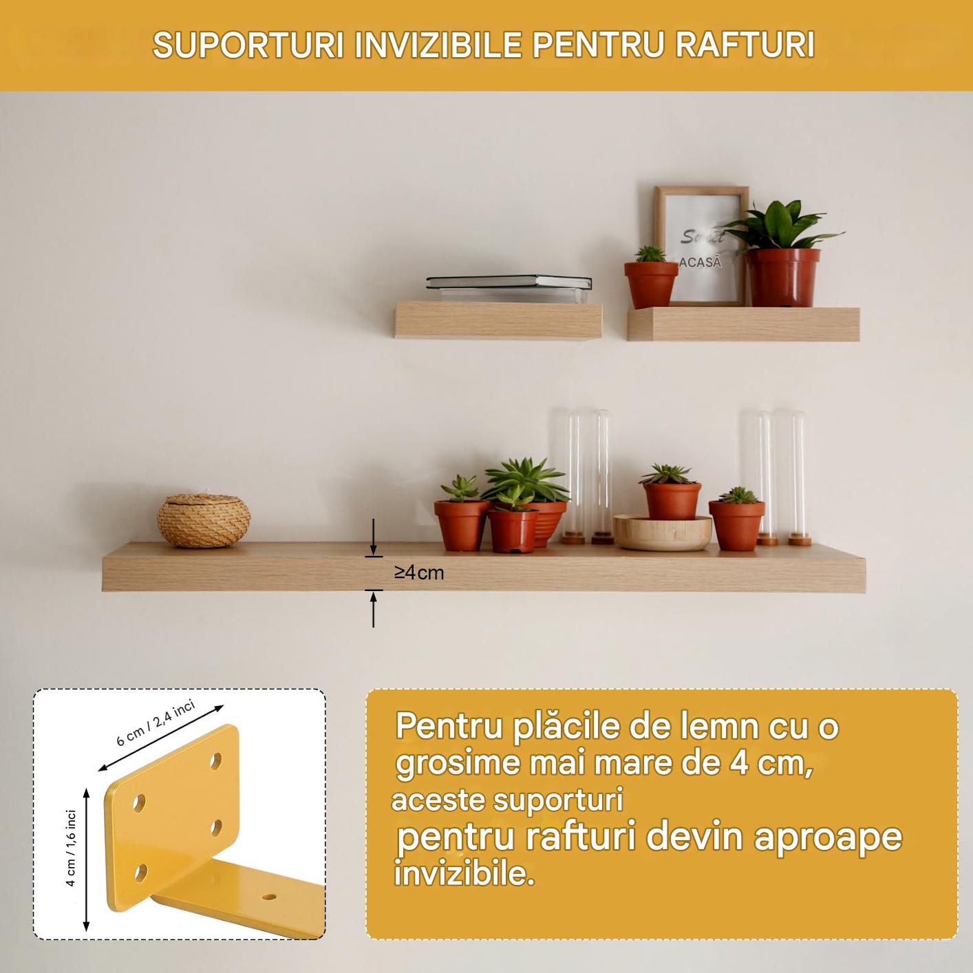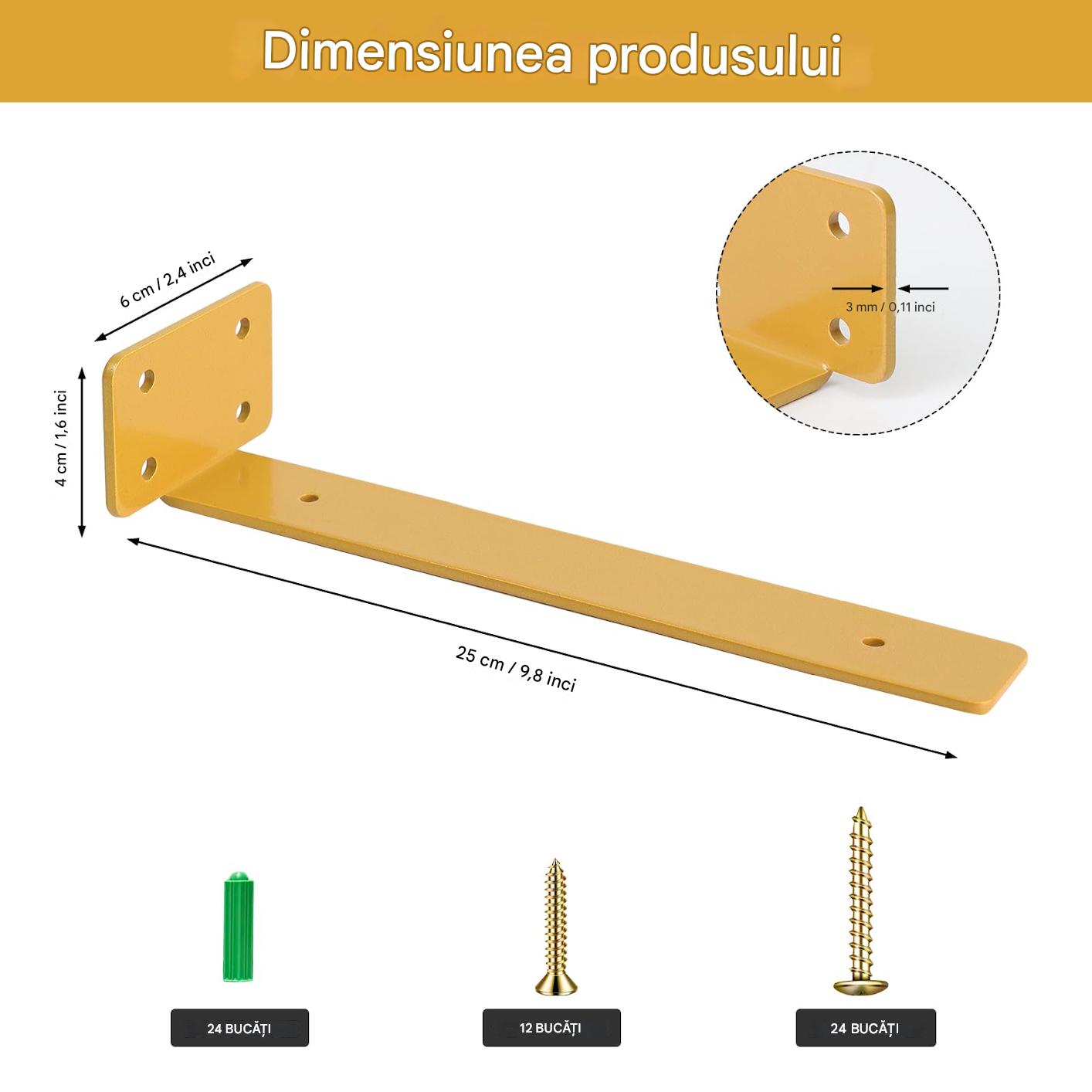 6 x suport de raft, invizibil in forma de L, metalice, industriale, culoare galben, 25cm