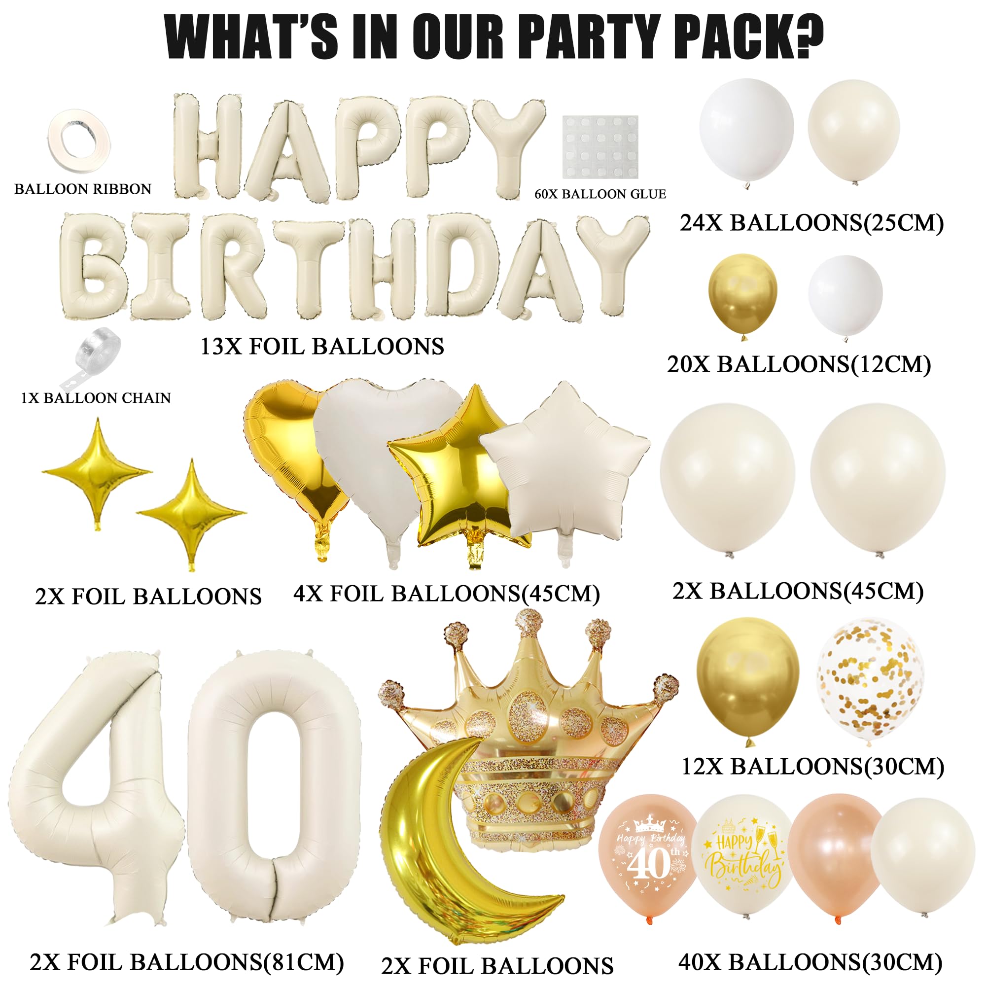 Baloane aniversare, de 40 de ani, auriu alb, balon gigant folie cu numarul 40