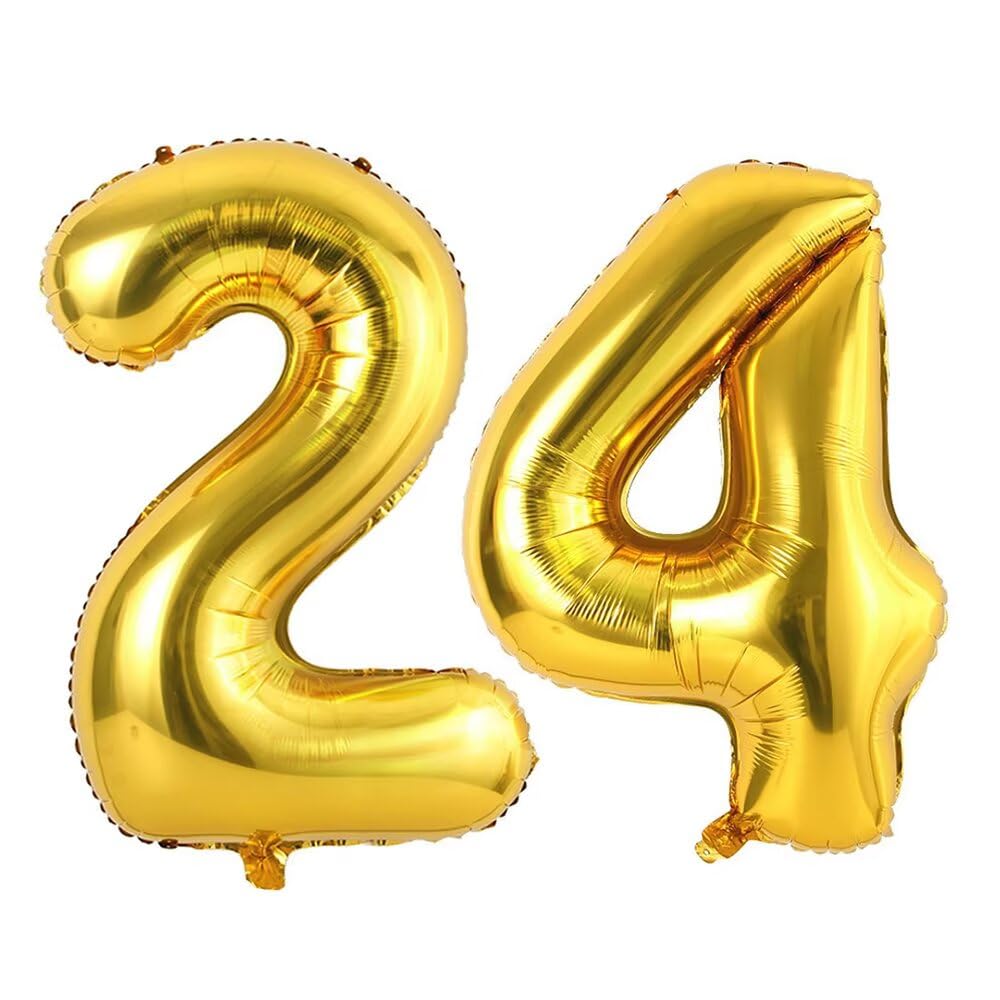 Baloane aurii din folie, 81 cm, cu numere 24/42, pentru zi de nastere