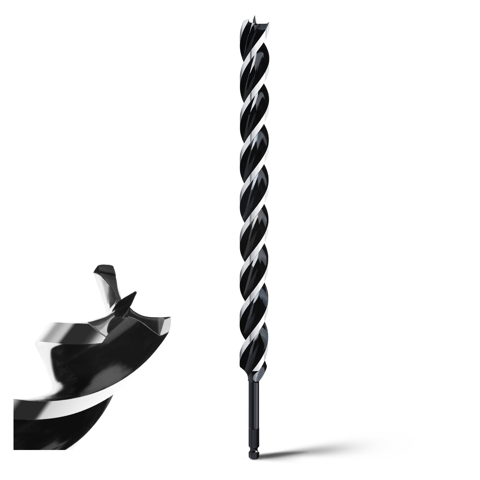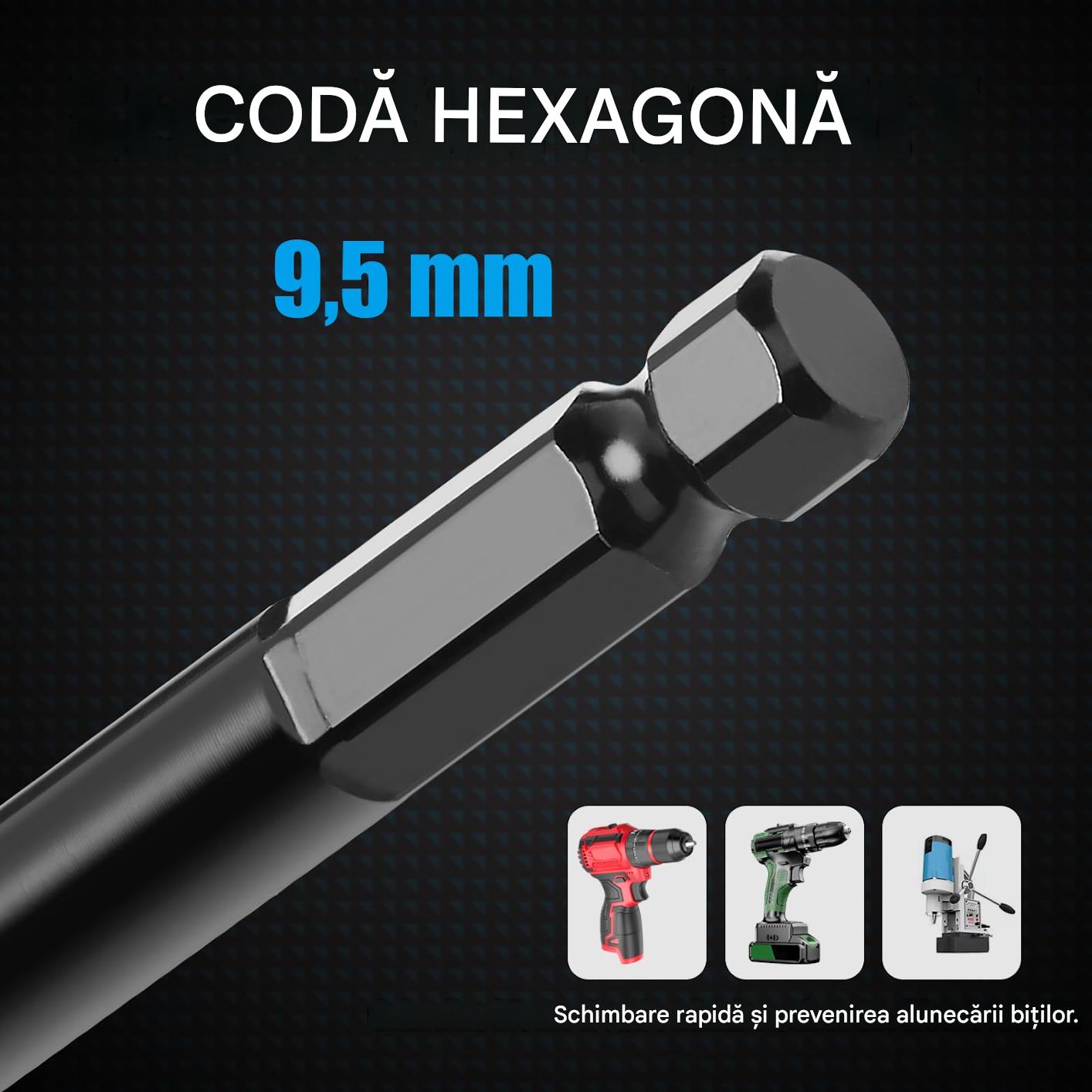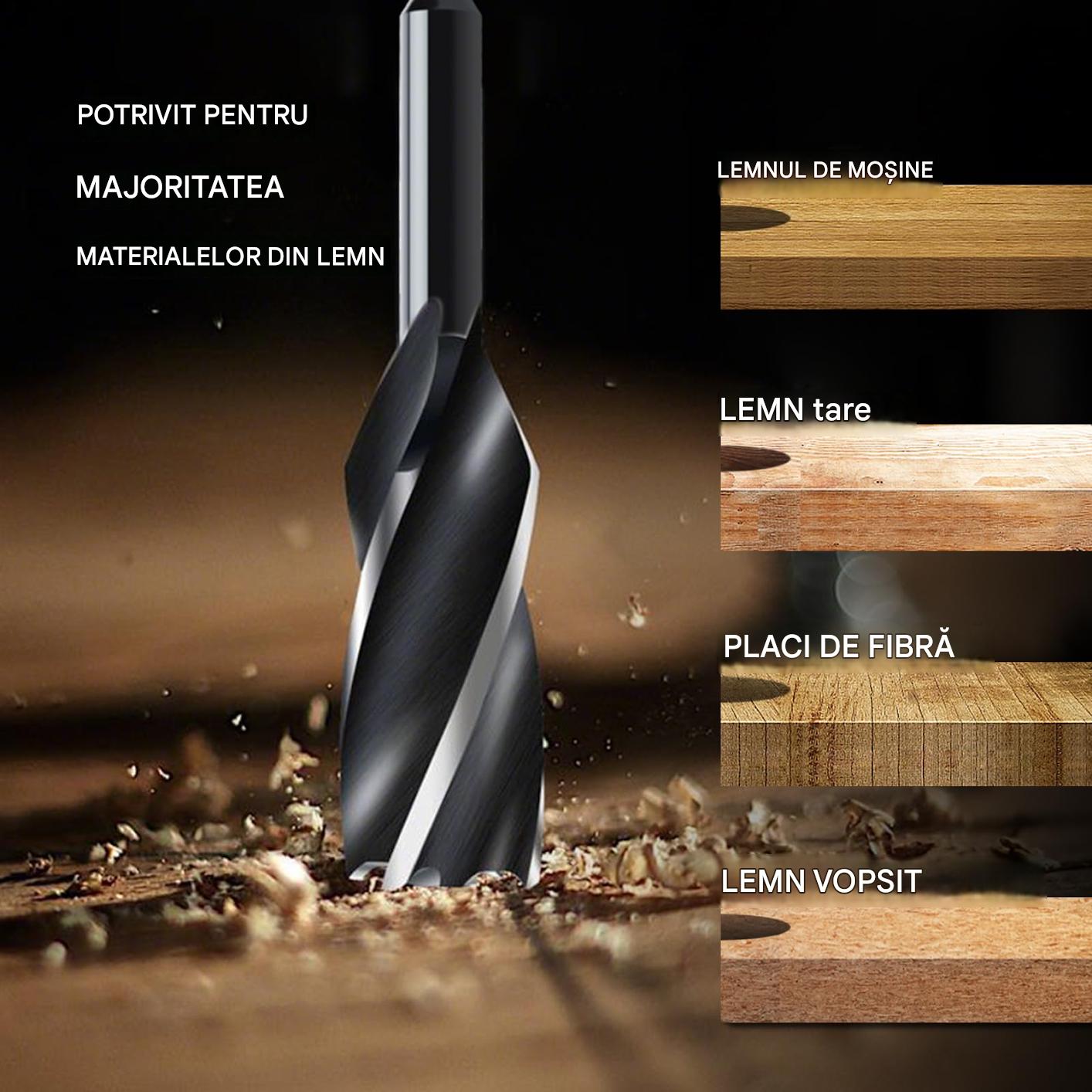 Burghiu pentru lemn 30×460 mm, burghiu cu spirala pentru lemn de esenta moale si lemn de esenta tare, cu varf de centrare și coadă E 9,5