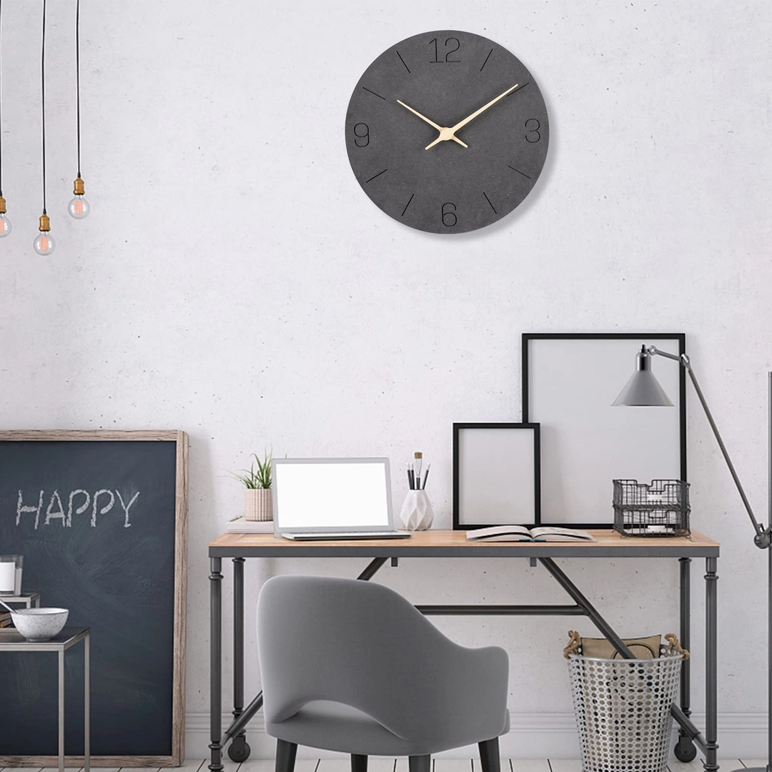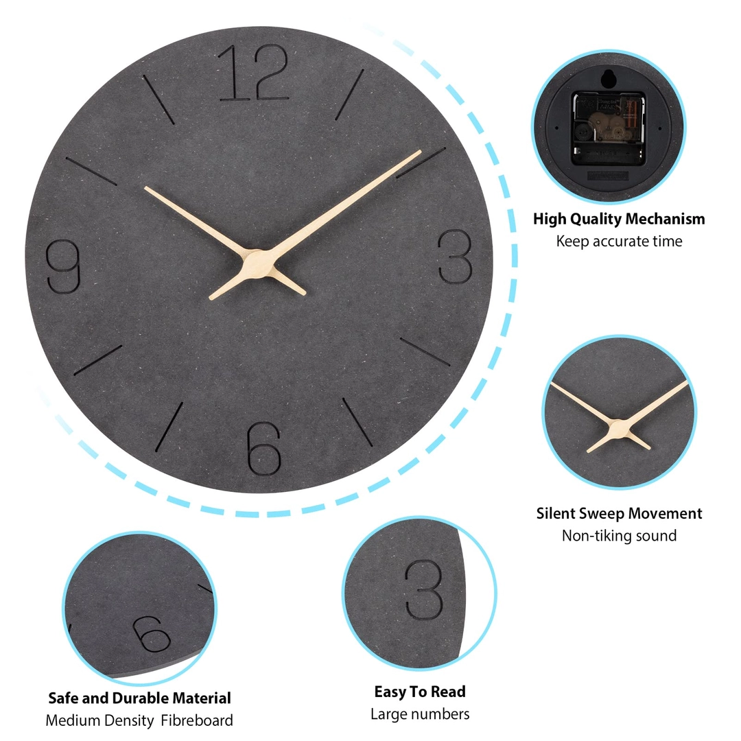 Ceas de perete din MDF, negru, silentios, d. 30cm