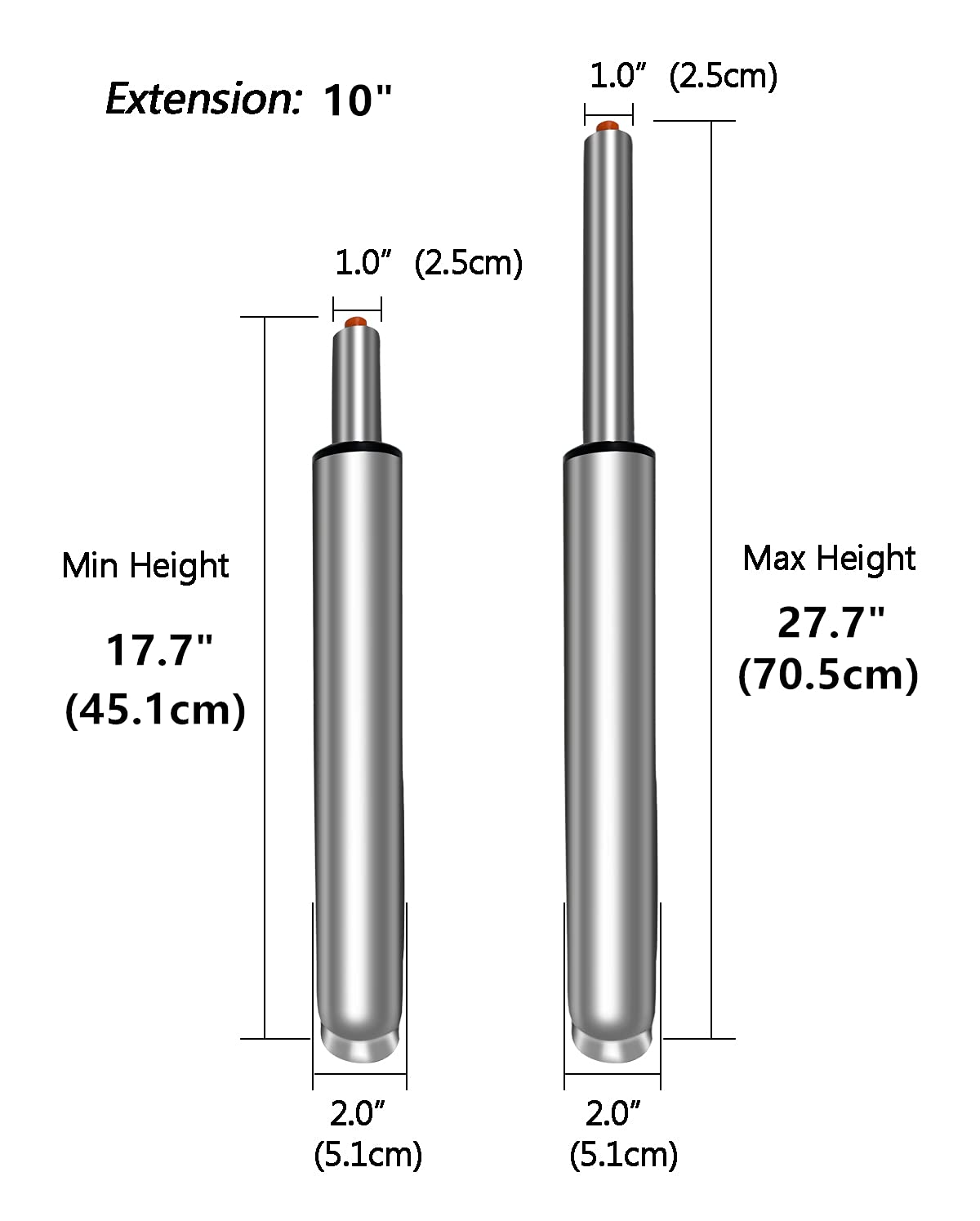 Cilindru de ridicare cu gaz, reglabil 450-700 mm, pentru scaun de bar