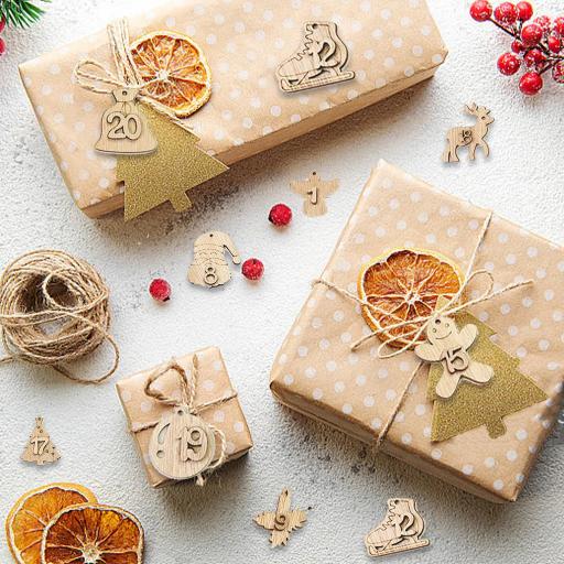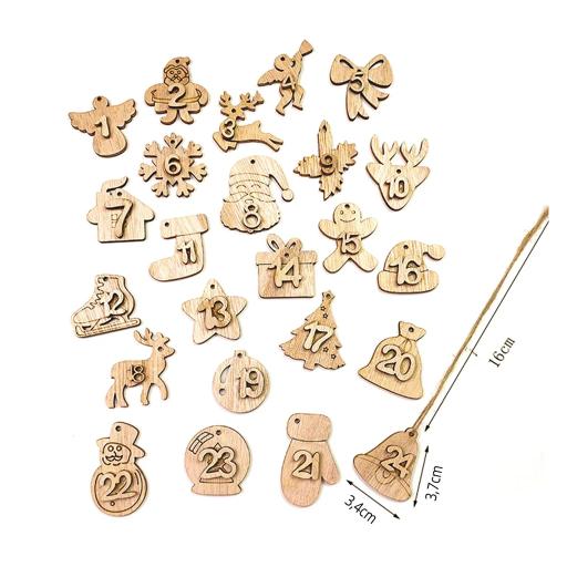 Decoratiuni lemn pentru Craciun, 24 bucati