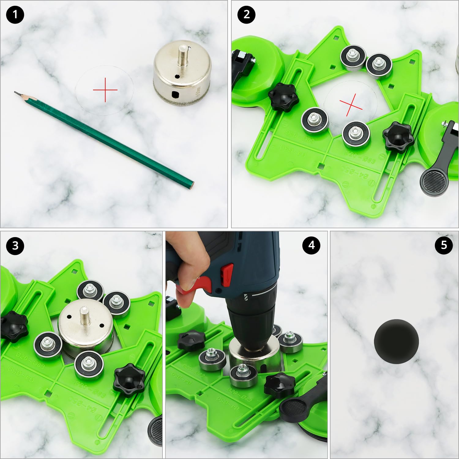 Dispozitiv de ghidare pentru carota QWORK®, reglabil 4-83 mm cu baza cu ventuze, pentru sticla, marmura, faianta