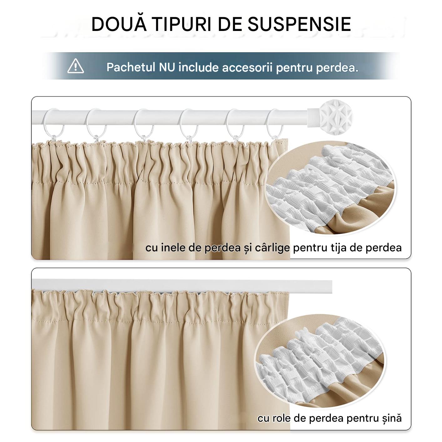 Draperie opaca cu rejansa, 245×200 cm, bej, cu protectie termica (1 bucata)