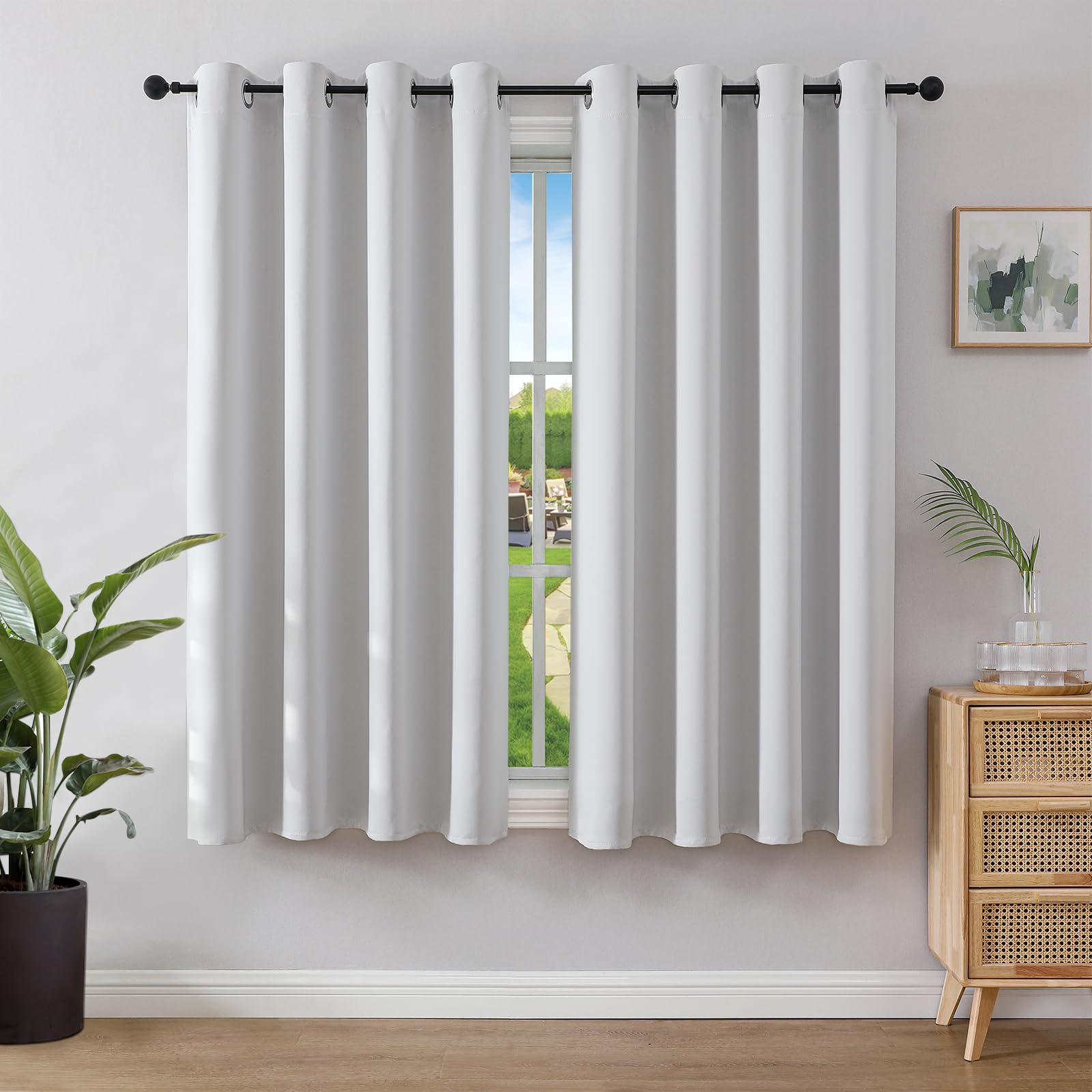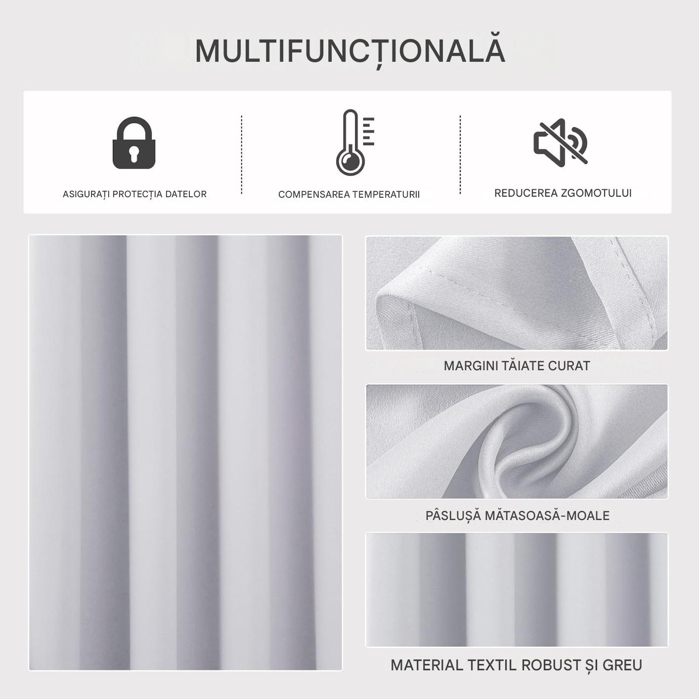 Draperii opace cu ocheti, set de 2, termo si fono-izolanta, 137×117 cm, gri alb