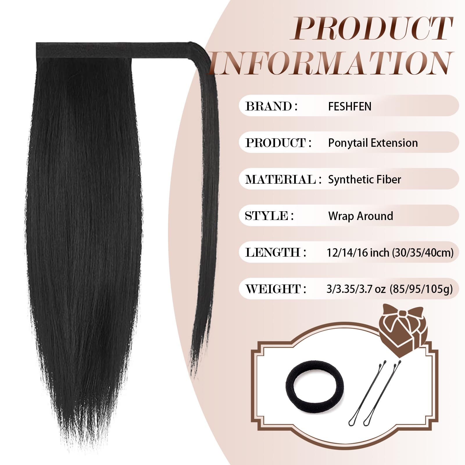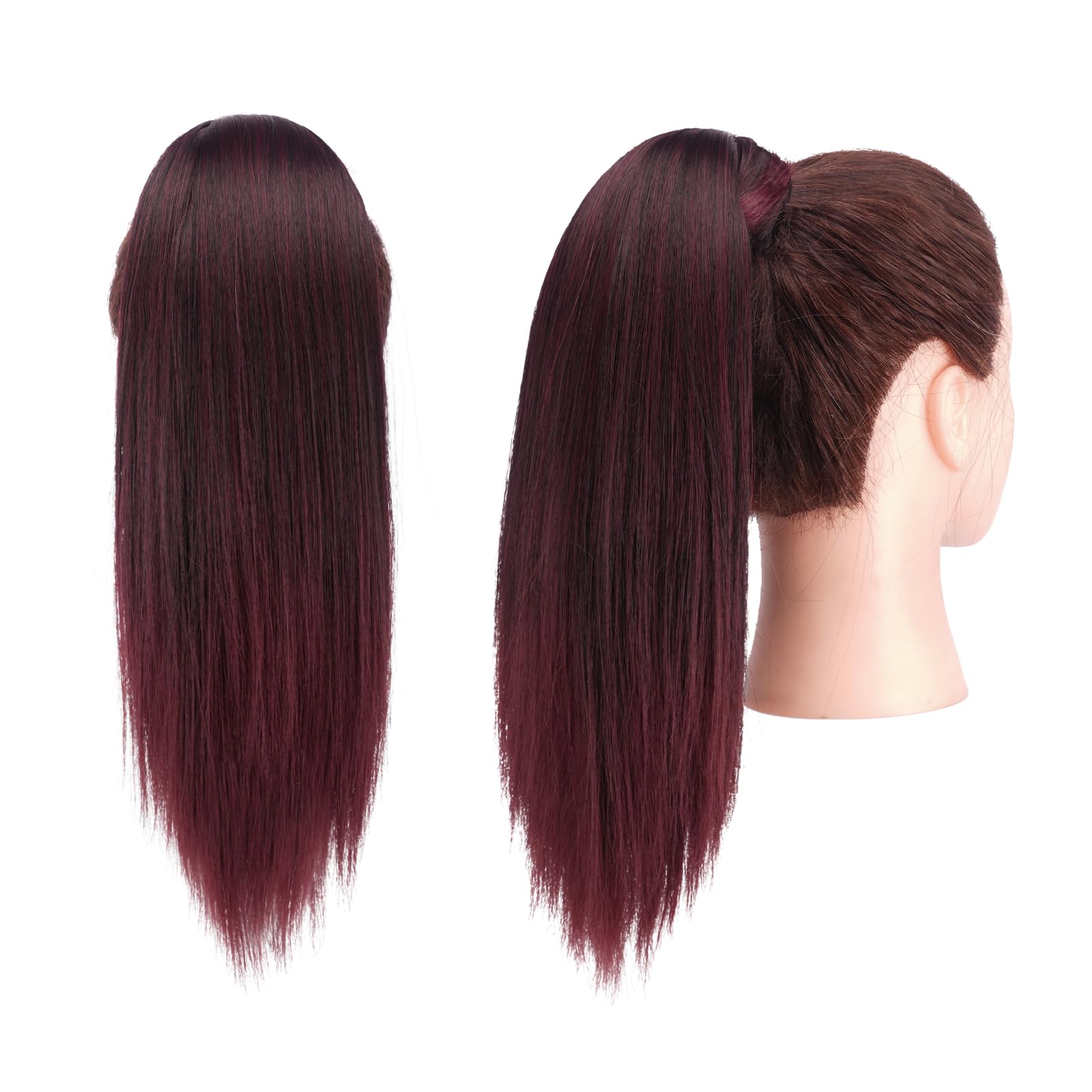 Extensie coada de cal FESHFEN, dreapta si lunga, cu clips, sintetica, 30 cm, negru si visiniu