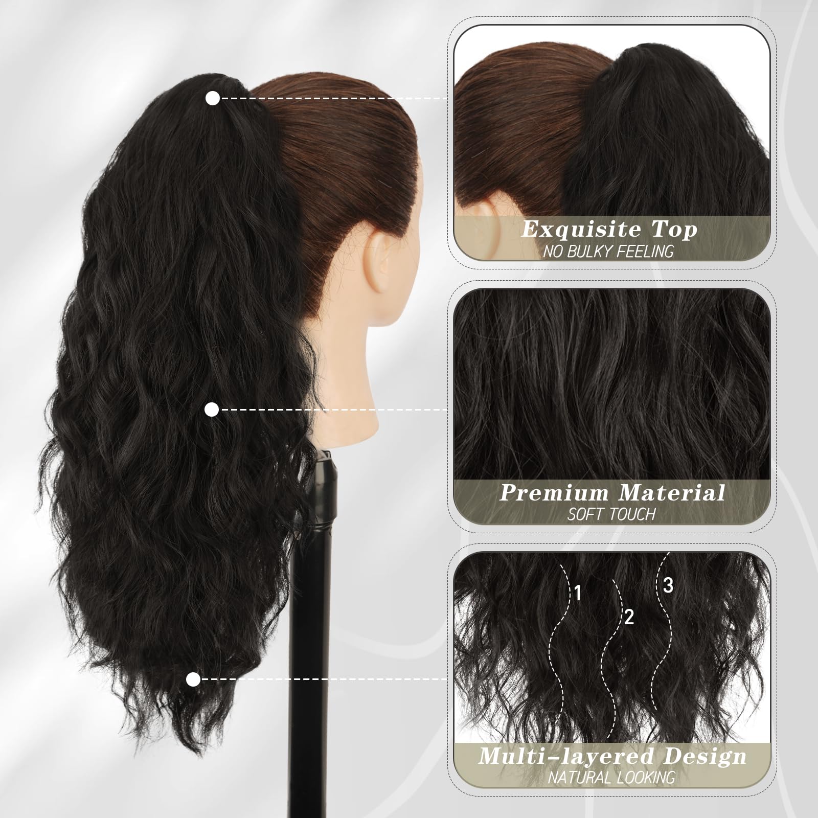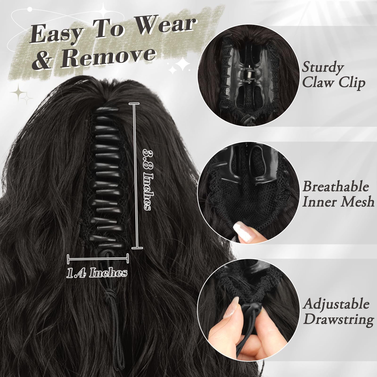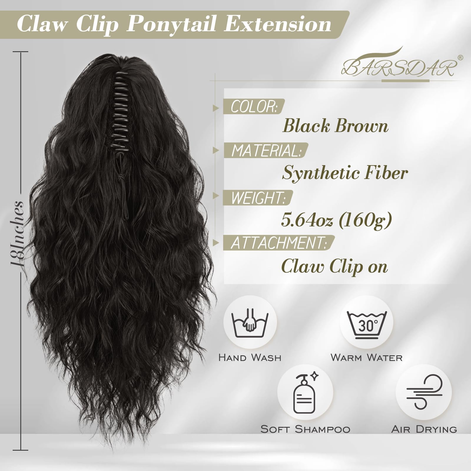 Extensie de par, coada de cal, cu clema tip gheara, 45 cm, sintetica, ondulata si creata, negru-maro