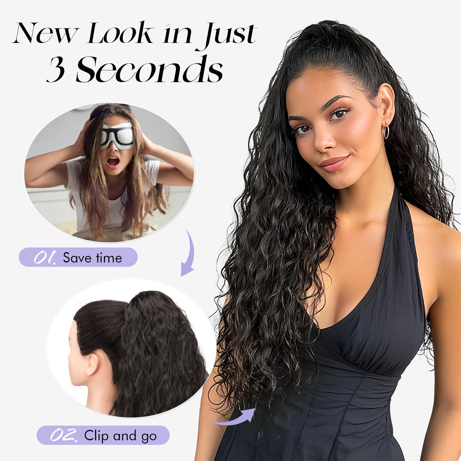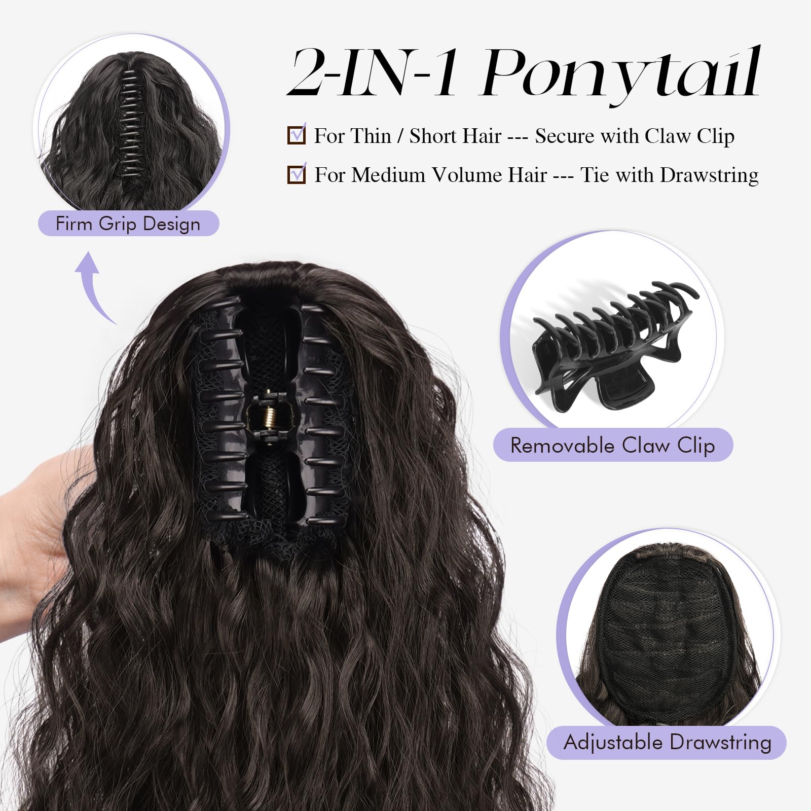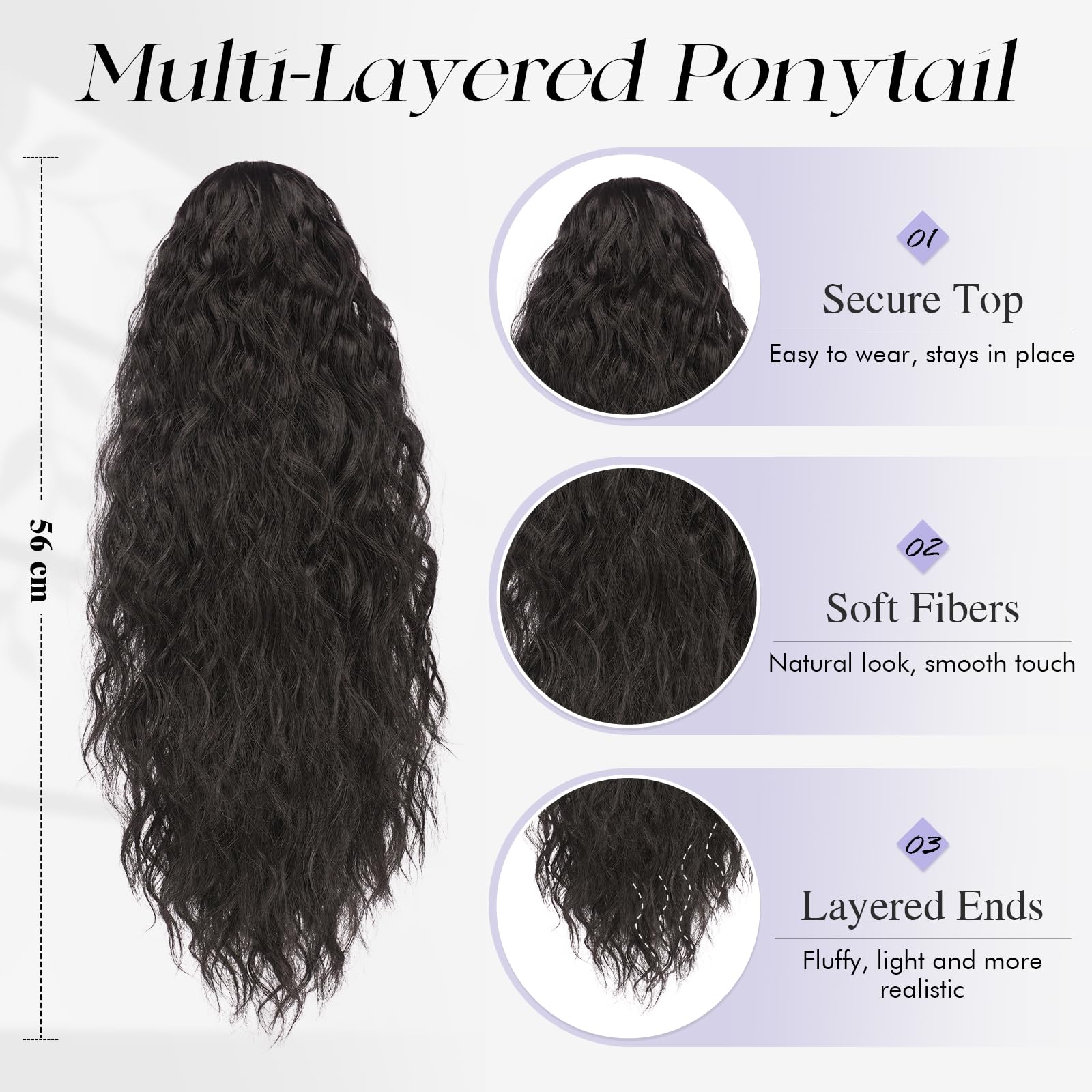 Extensie de par sintetica, coada de cal, 56 cm, ondulata, cu clema, negru-maro