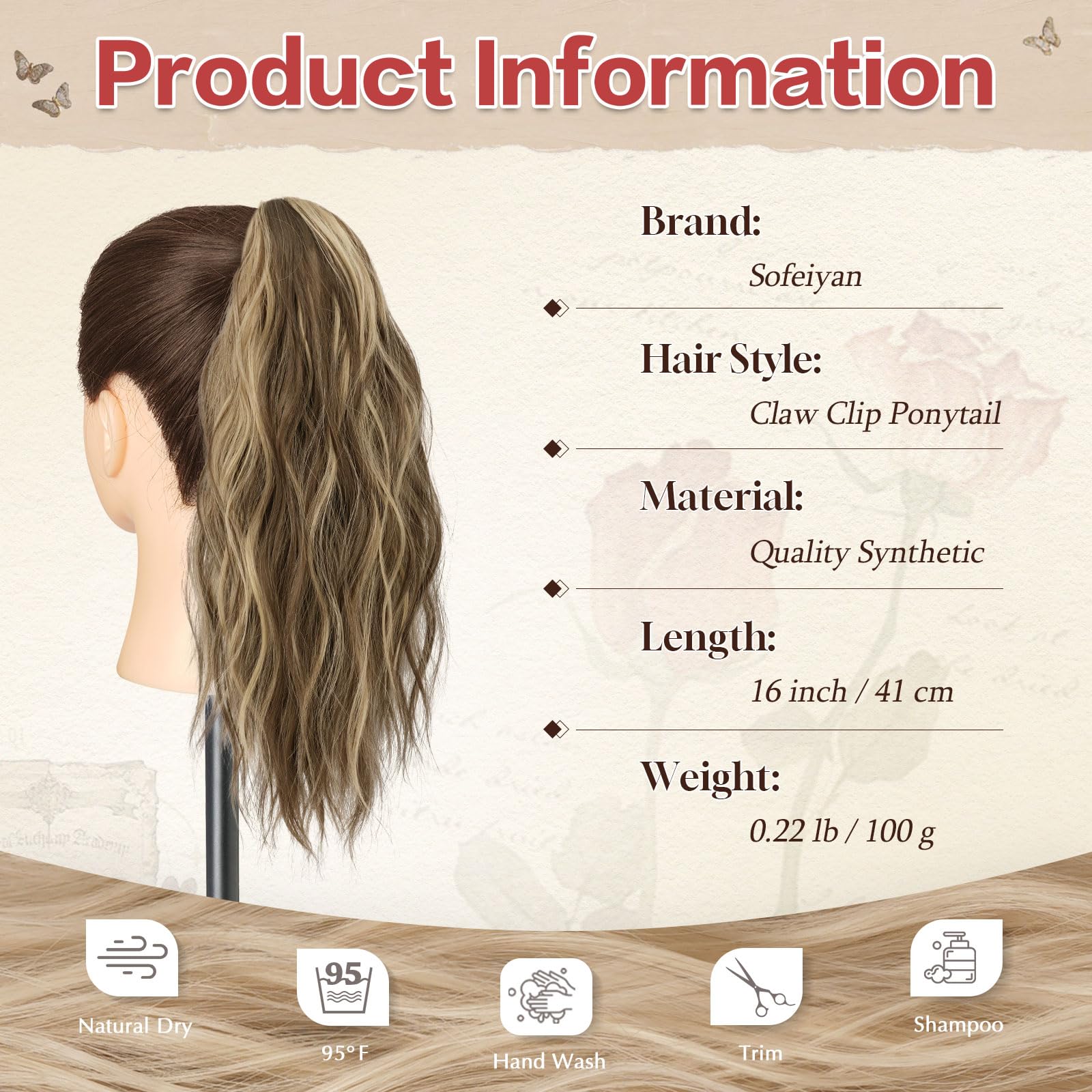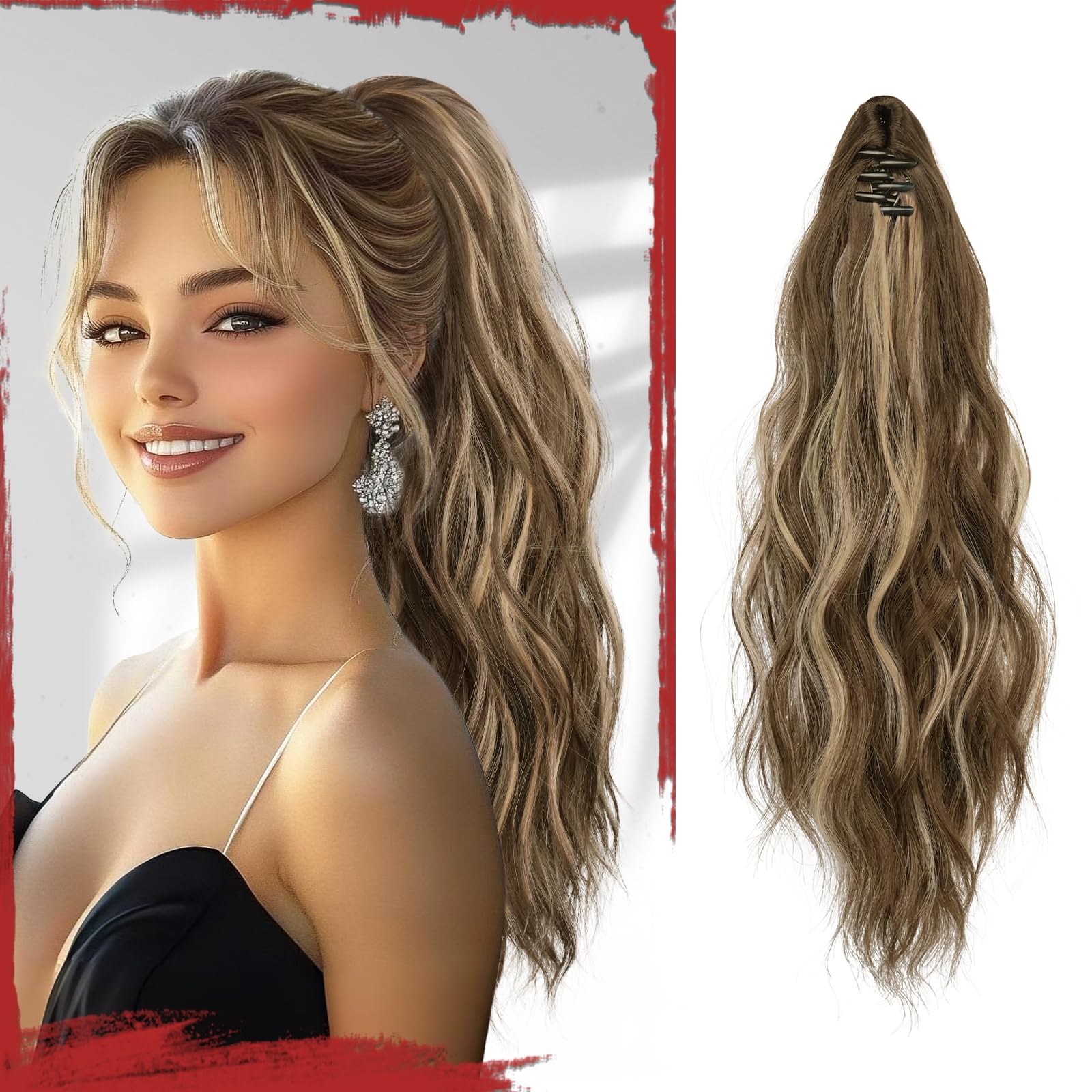 Extensie de par, sintetica, cu clips, 41 cm, ondulata, saten cenusiu si blond decolorat