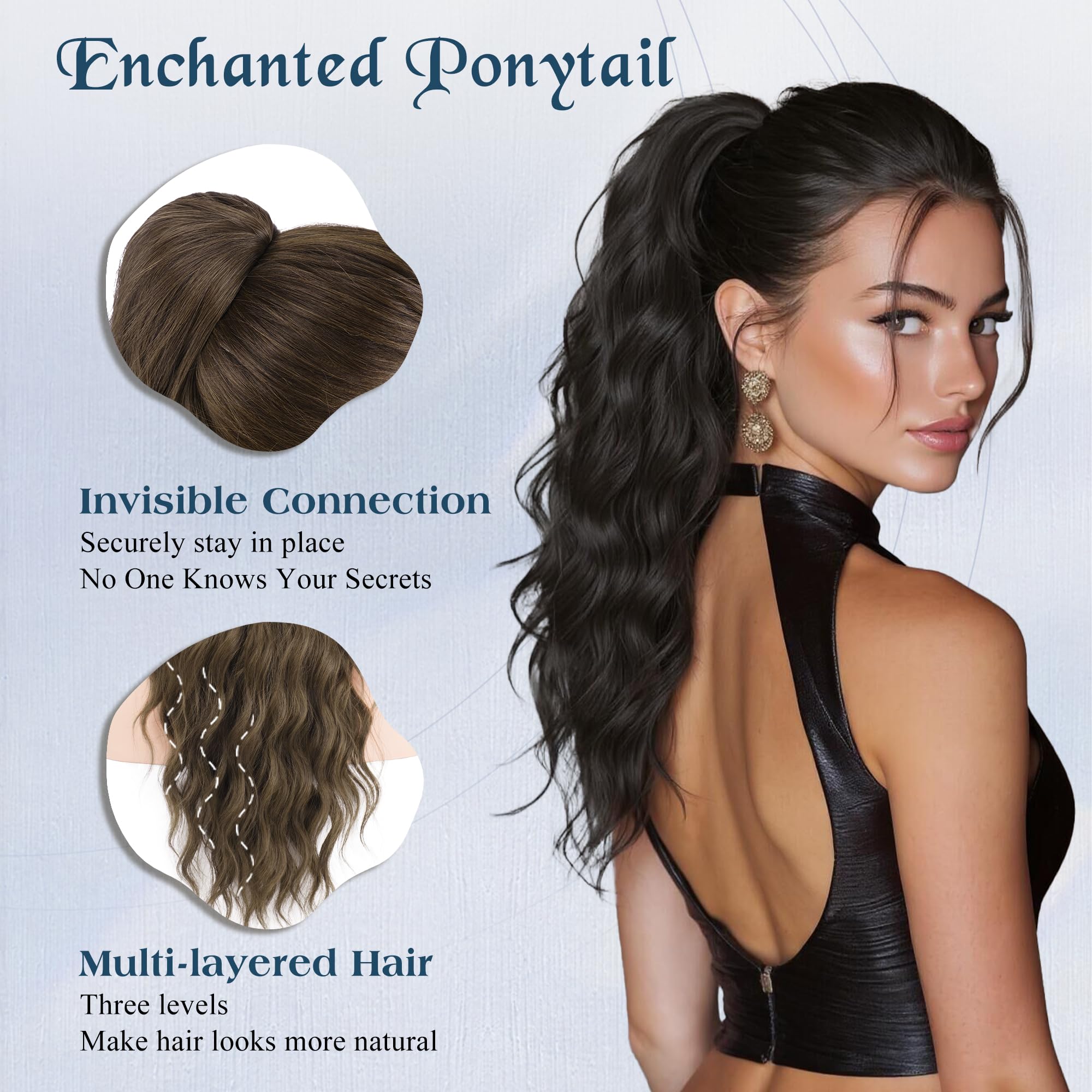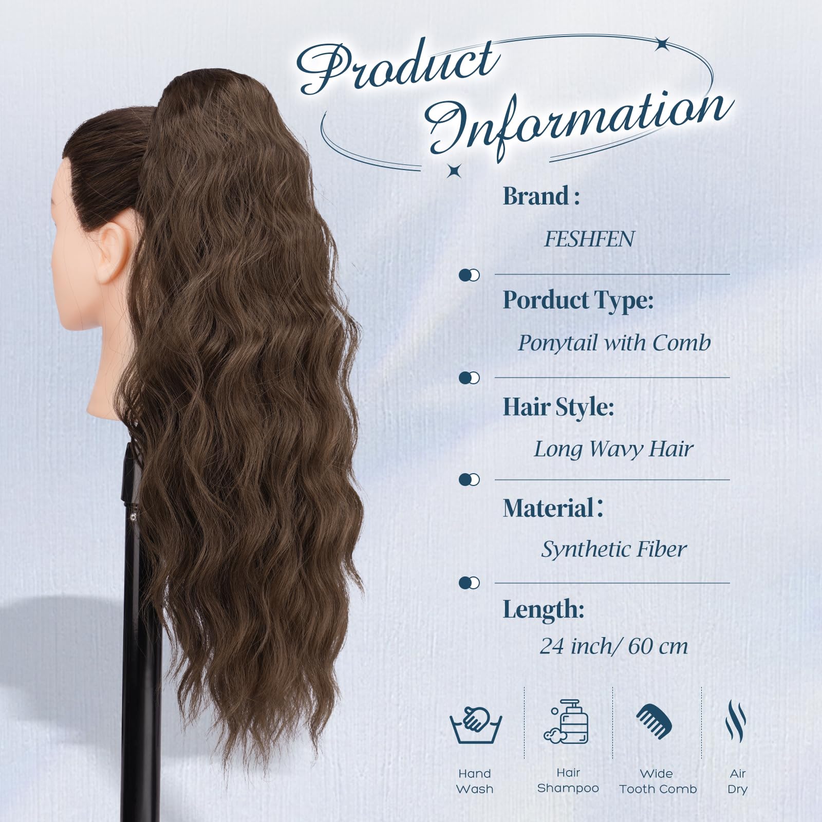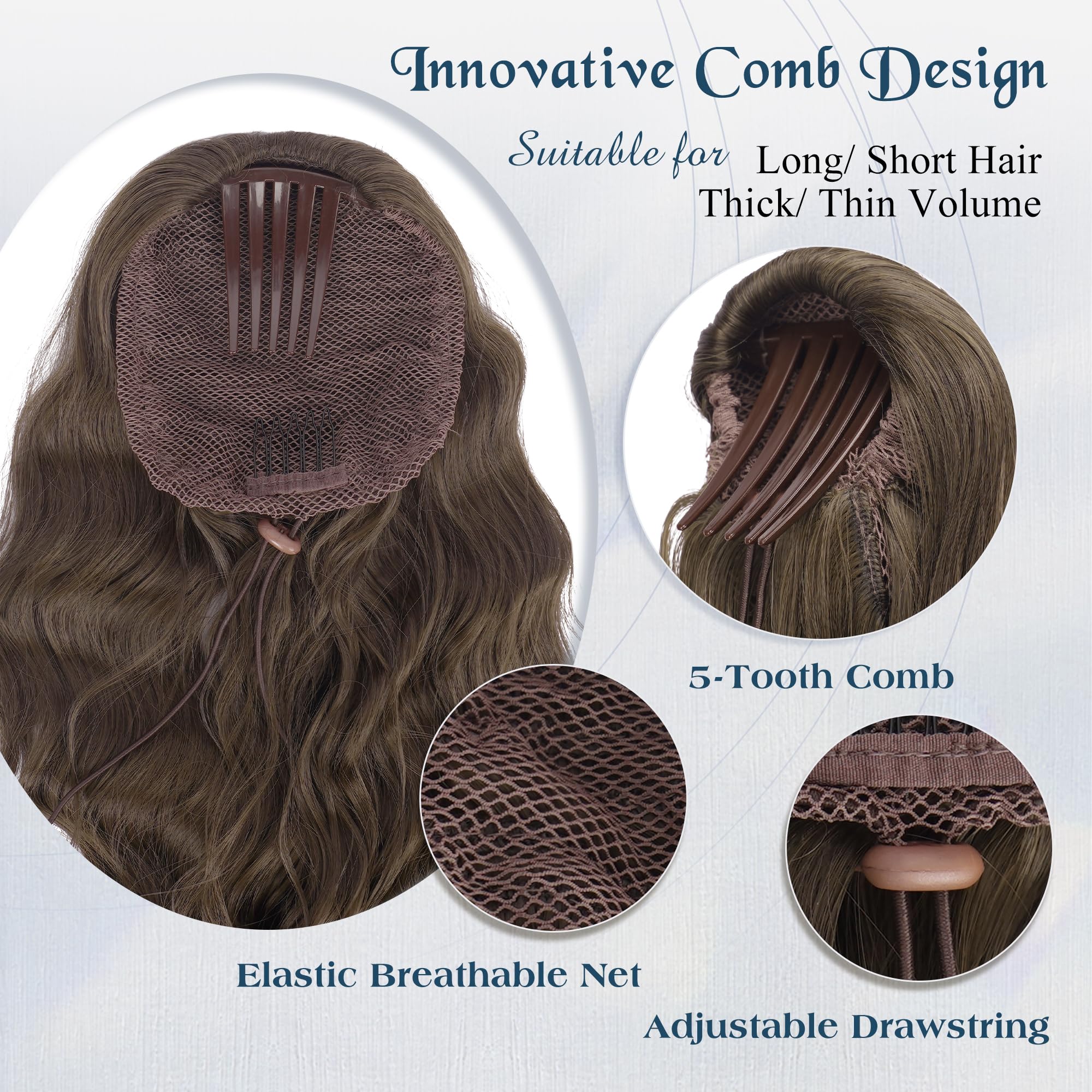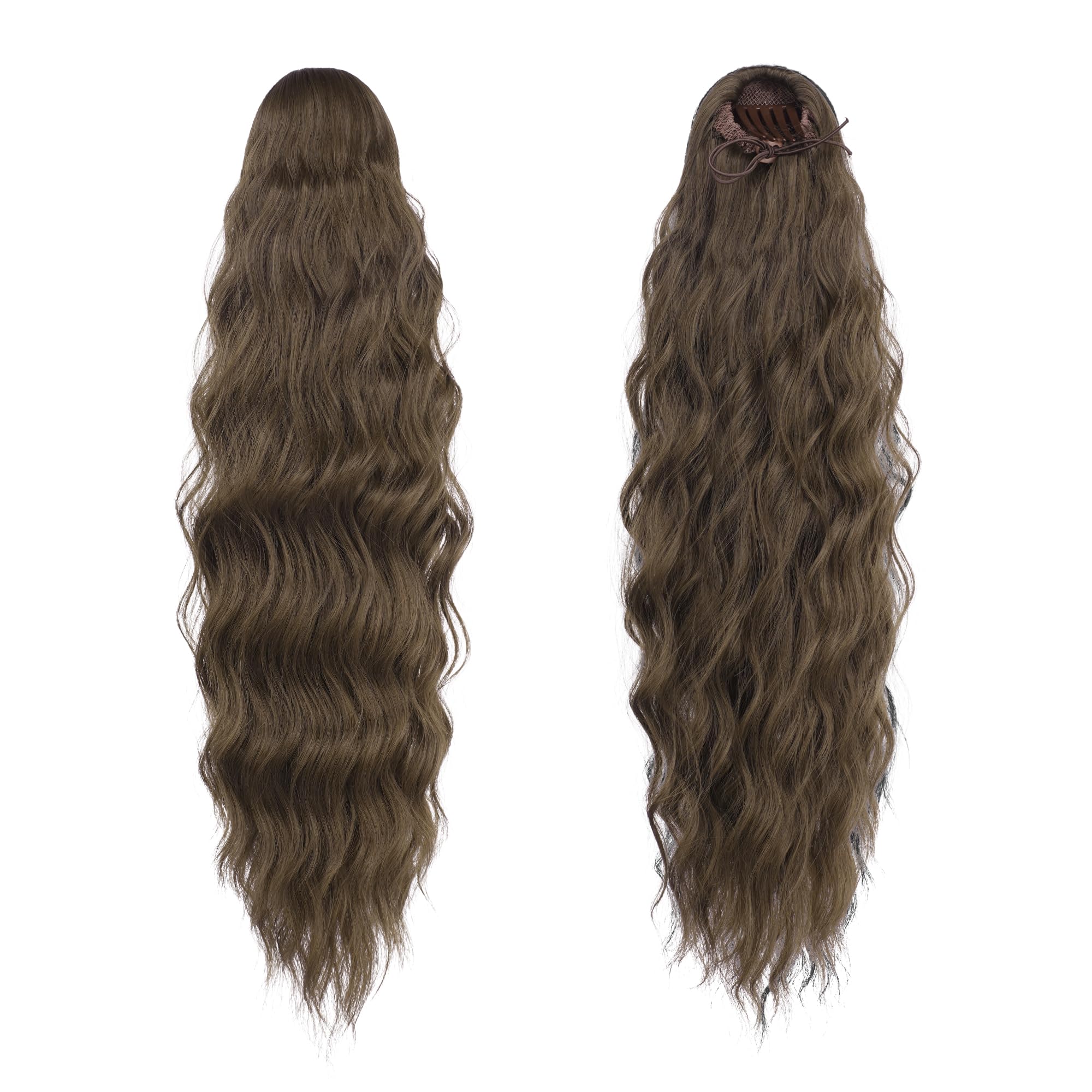 Extensie par coada de cal, ondulata, sintetica, 60 cm, maro deschis