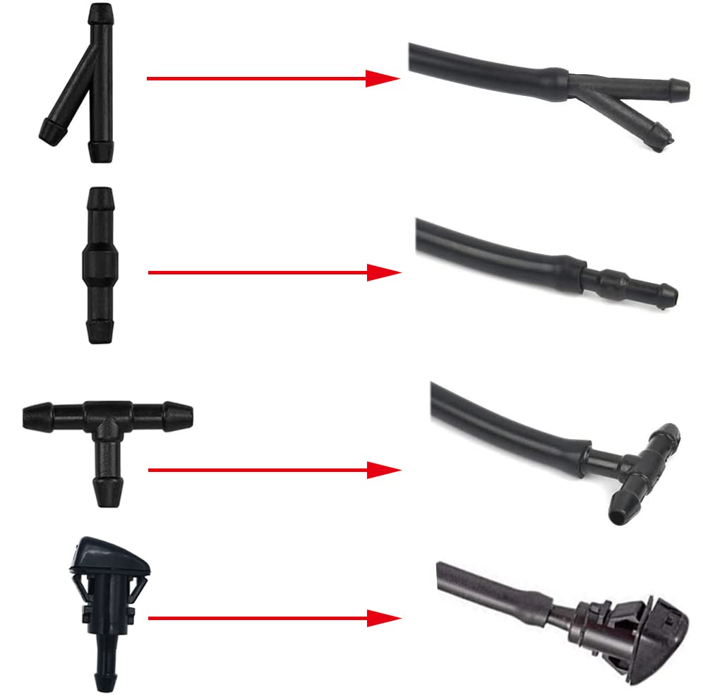 Kit de reparare furtun parbriz 5m, cu 15 piese conectori furtun + 2 buc duze de pulverizare