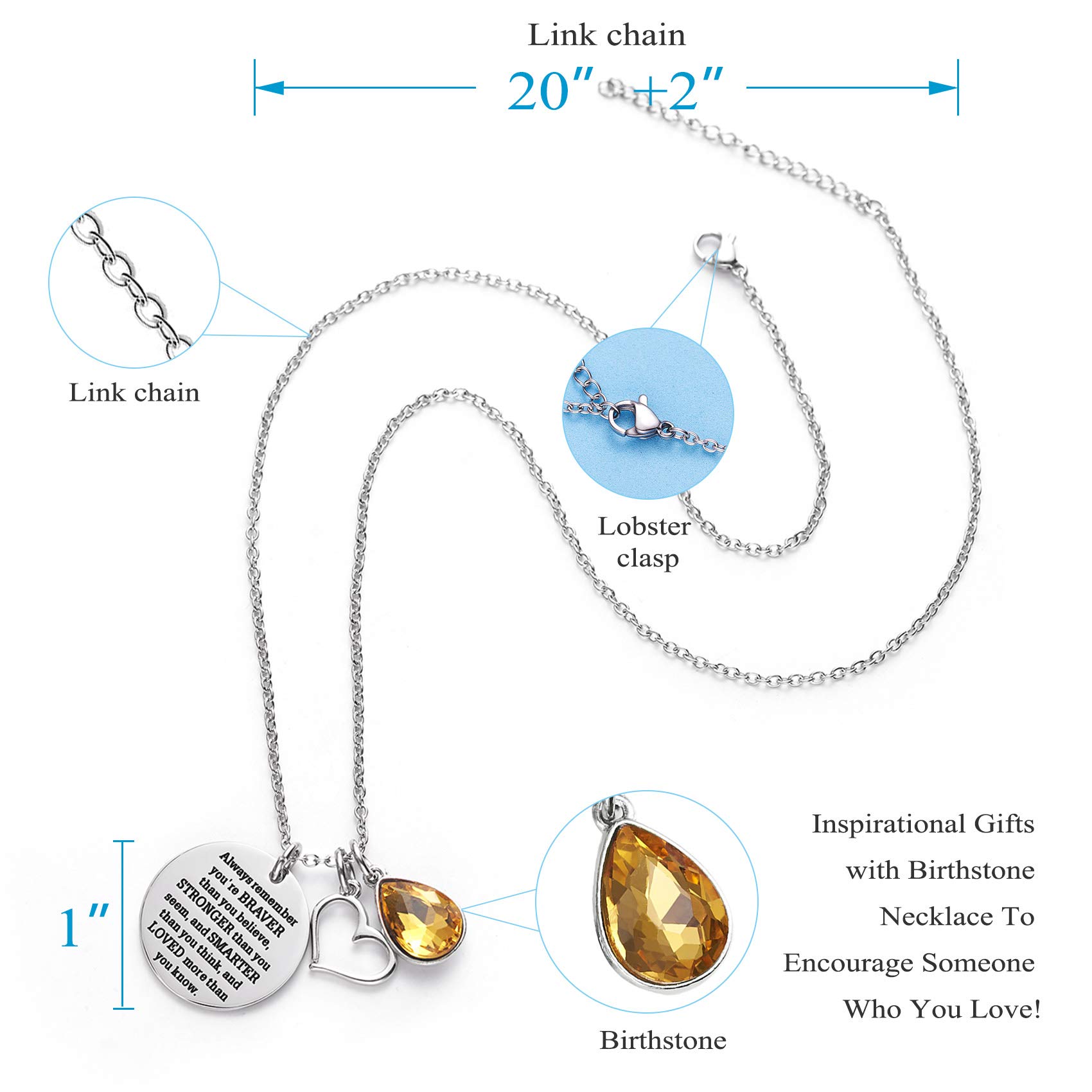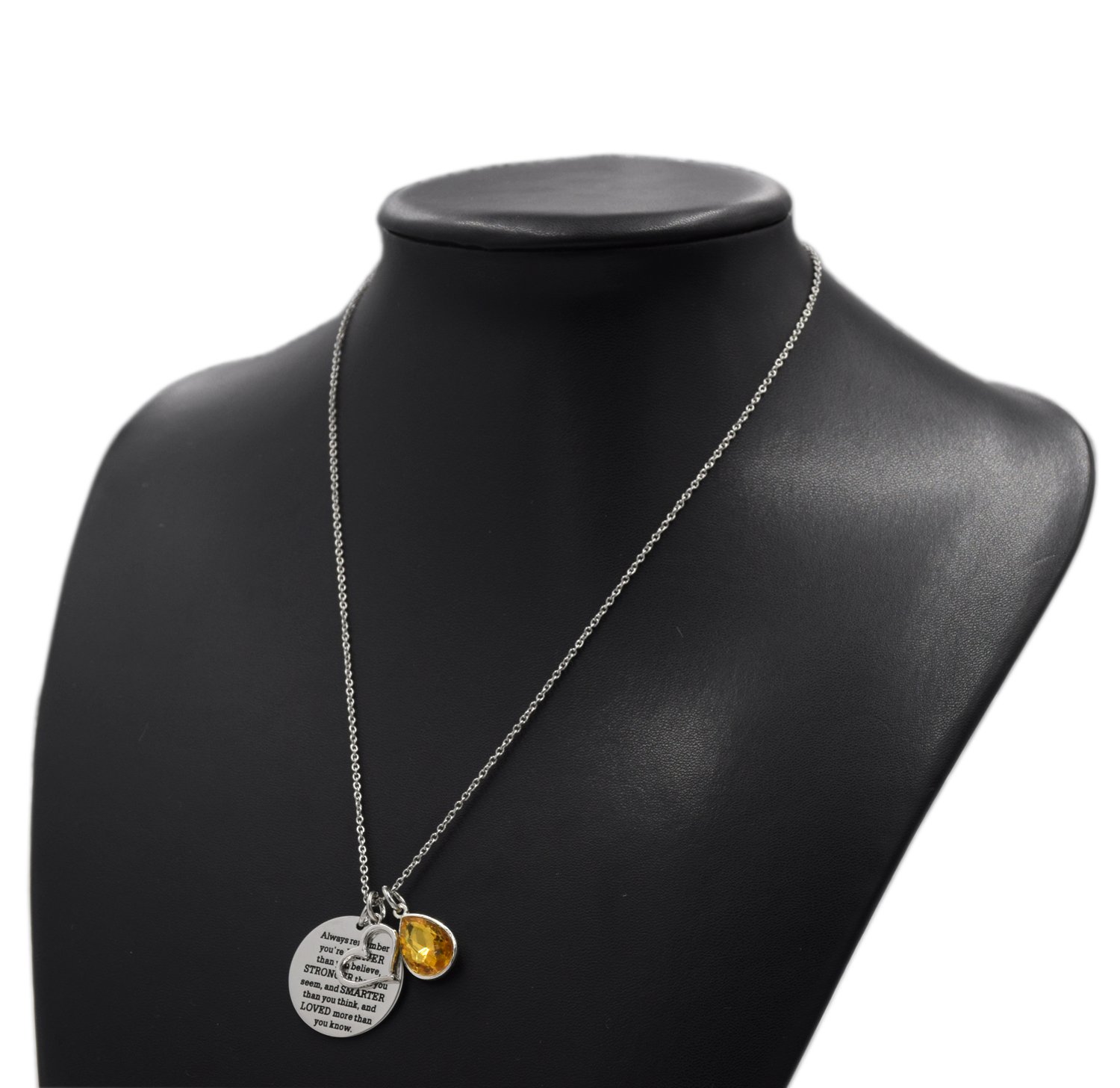 Lantisor din inox cu piatra portocalie, pandantiv si medalion cu inscriptia in engleza „Aminteste-ti intotdeauna ca esti mai curajos decat crezi, mai puternic decat pari si mai destept decat gandesti si iubit mai mult decat stii.”