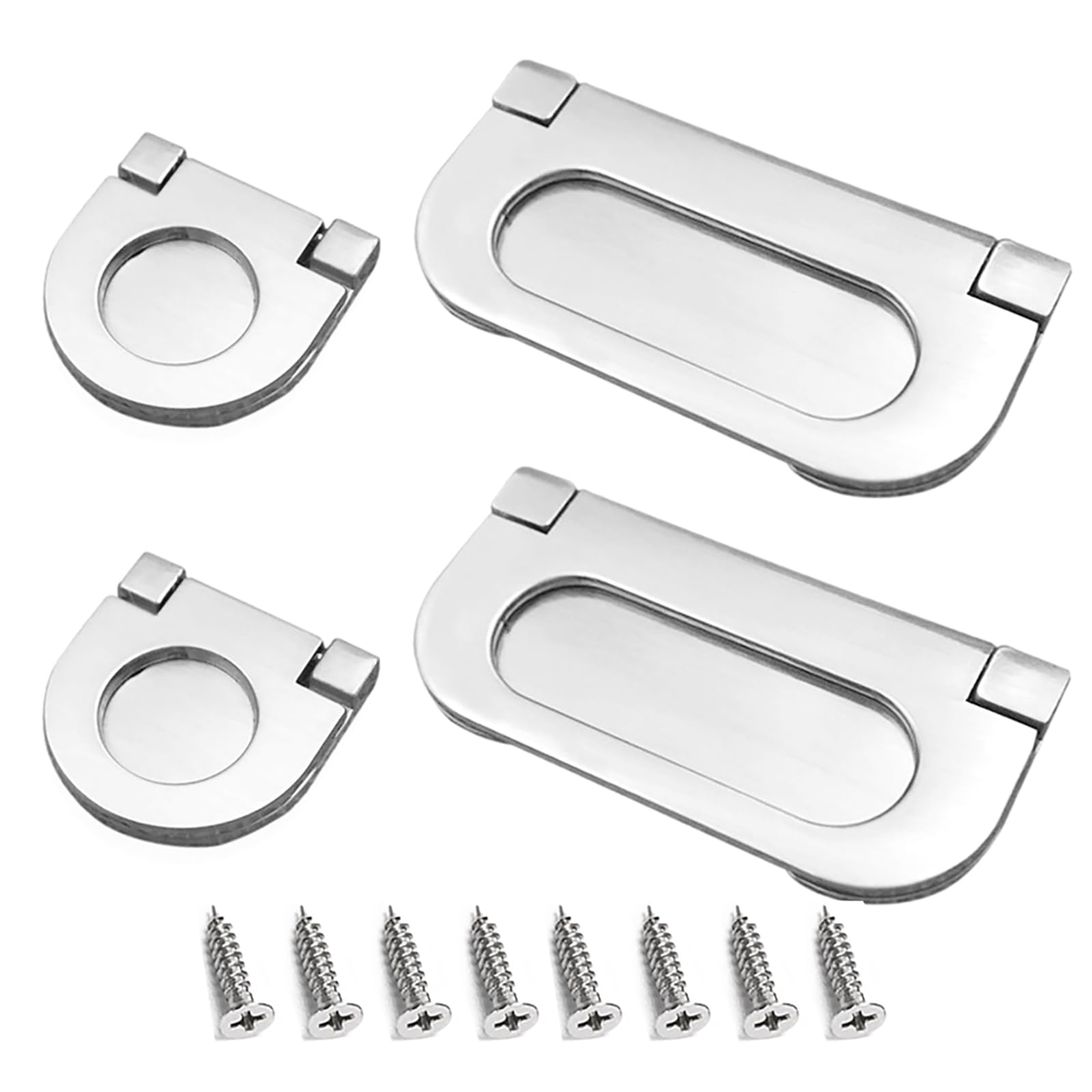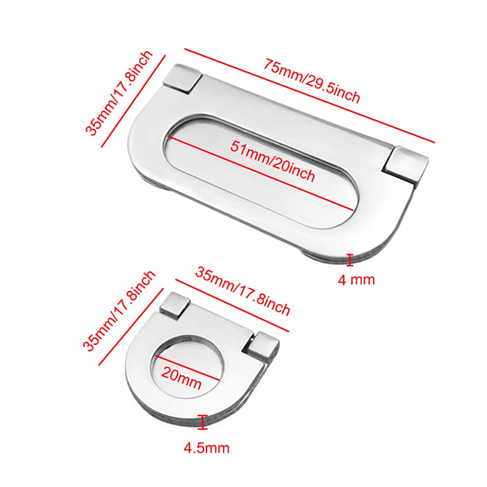 Manere plate, pentru sertare sau usi de dulap, argintiu, 2 buc. 35 mm si 2 buc. 75 mm