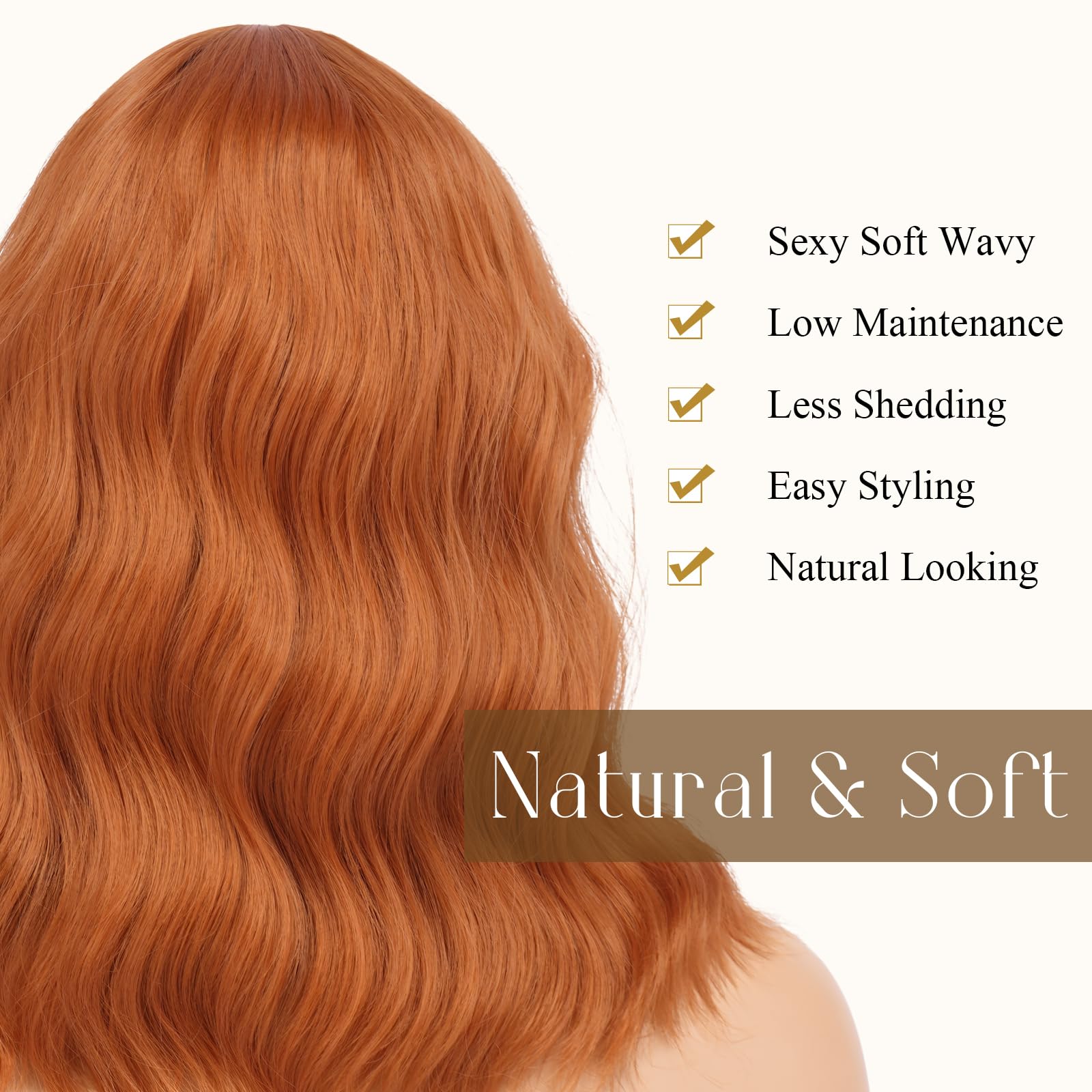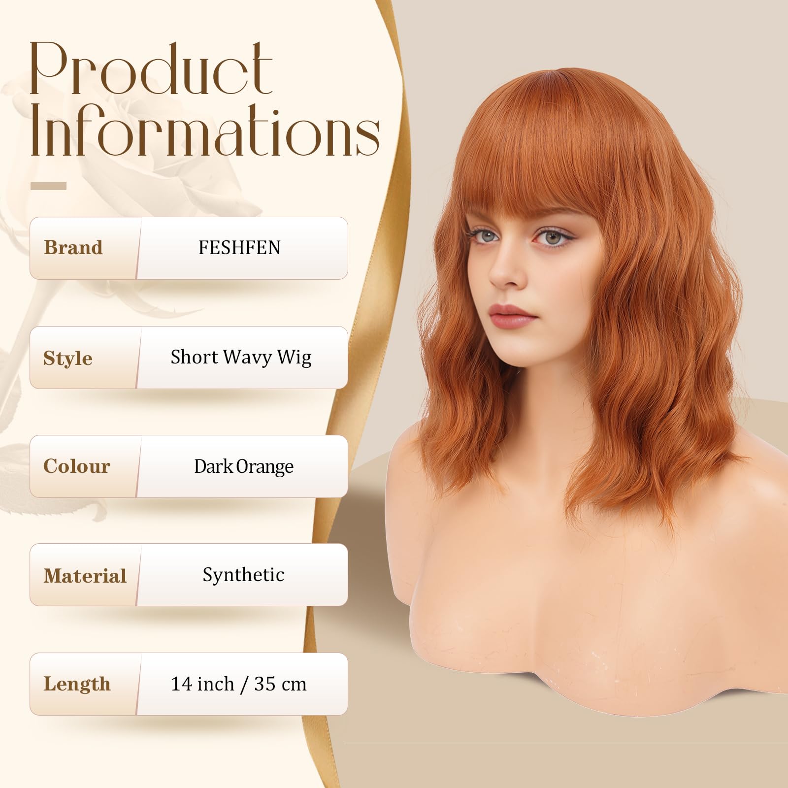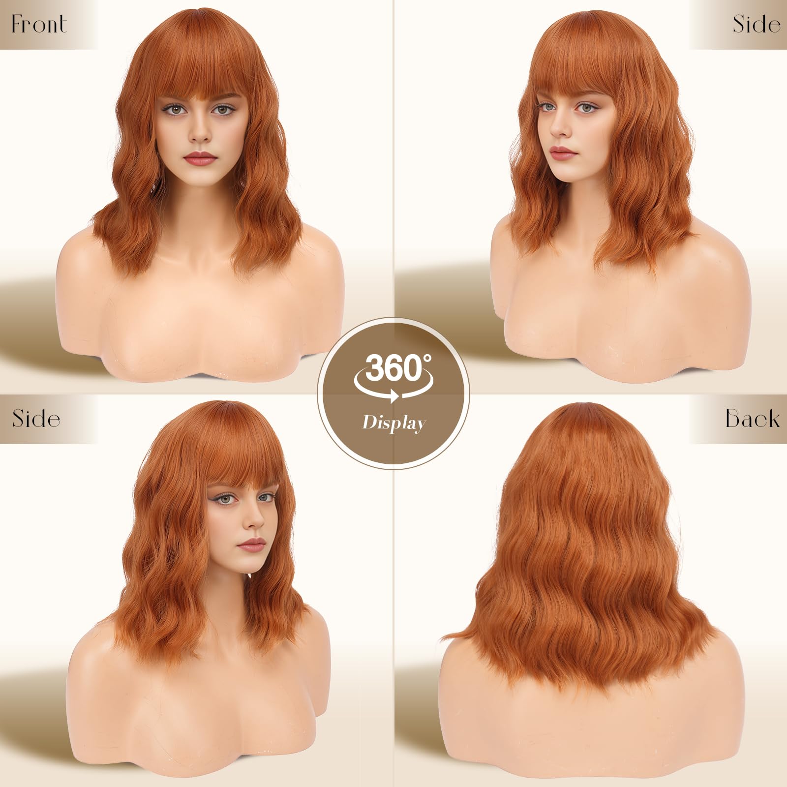 Peruca bob ondulata portocaliu inchis cu breton 35 cm este alegerea ideala pentru un look vibrant si modern. Textura ondulata si culoarea intensa ofera volum si personalitate. Par sintetic usor de purtat si intretinut.