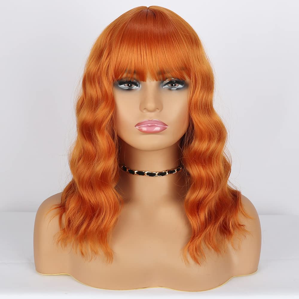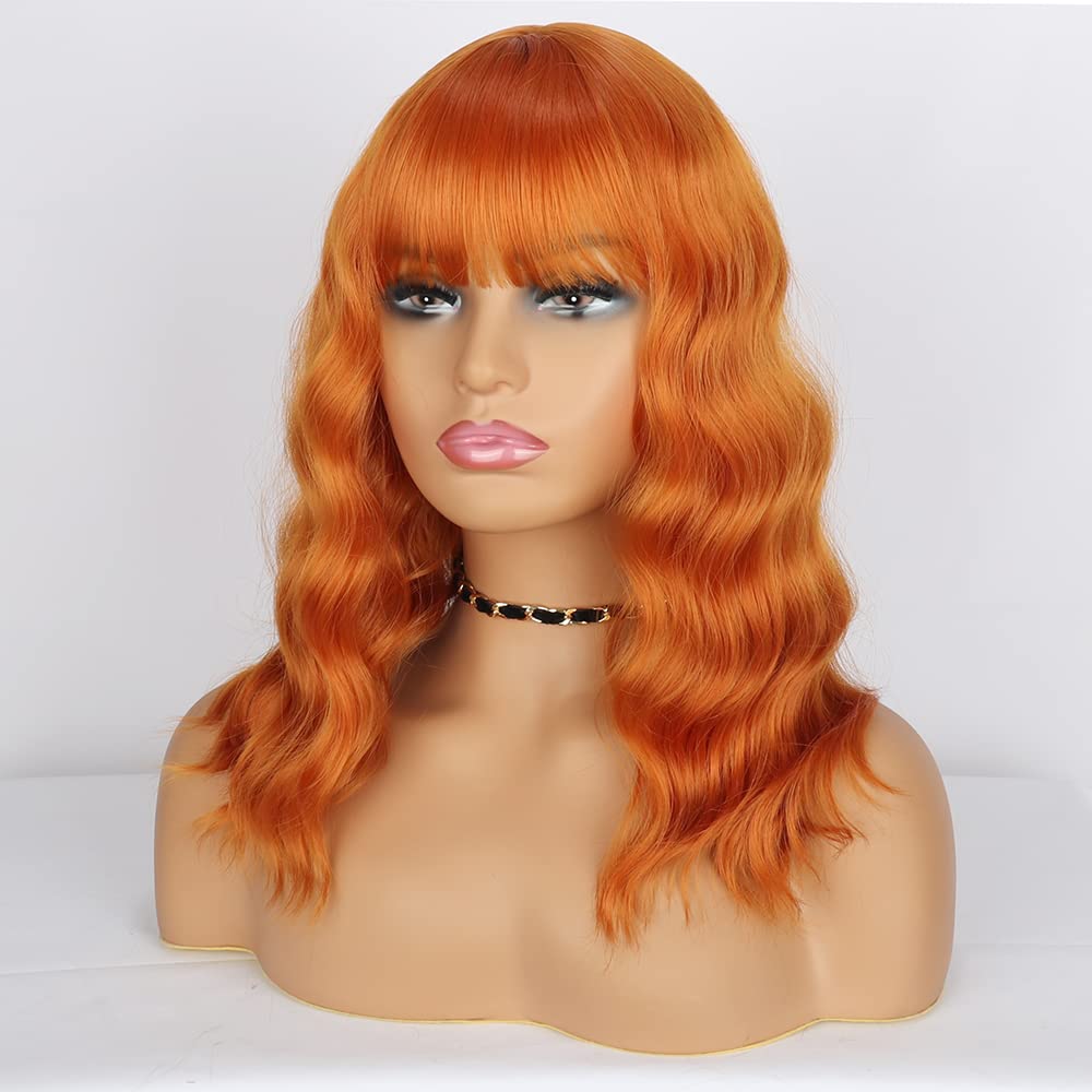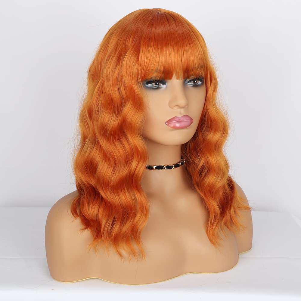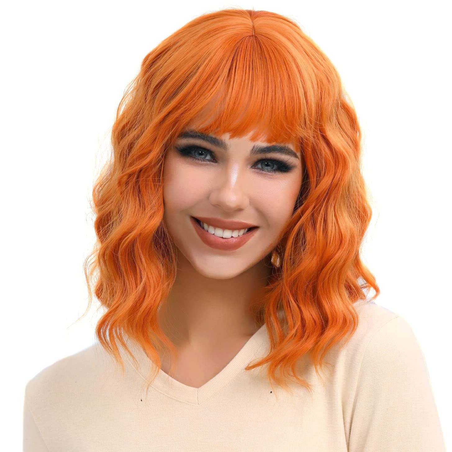 Peruca bob portocalie, cu breton, par sintetic, 35 cm