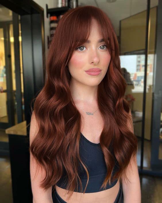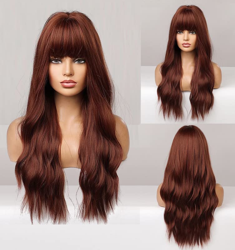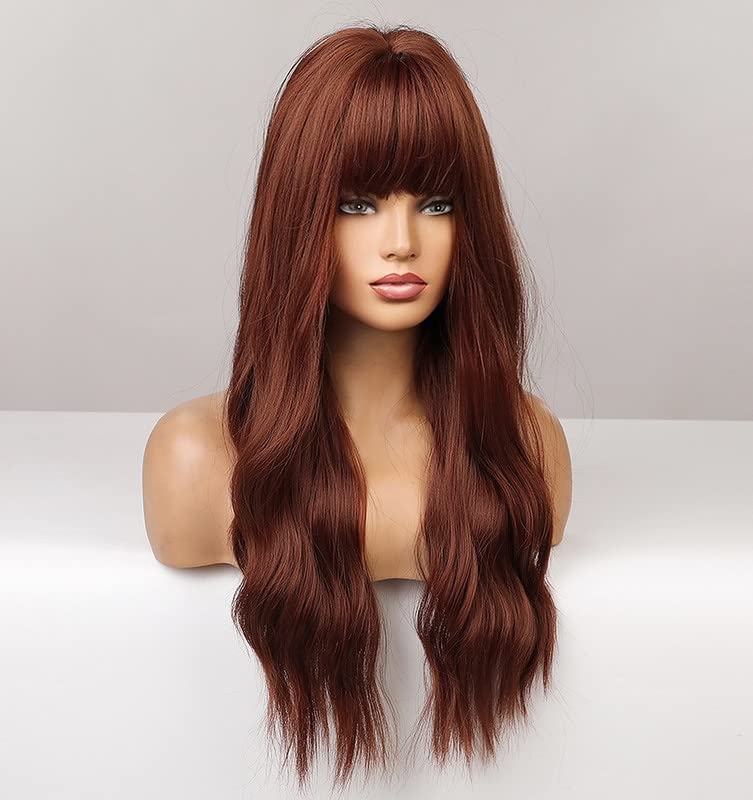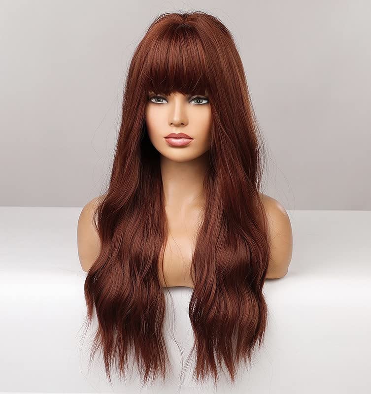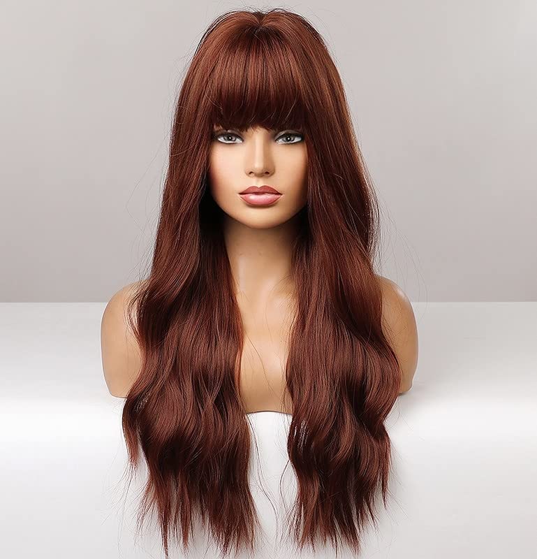 Peruca cu breton, lunga, ondulata, castaniu deschis, 56 cm