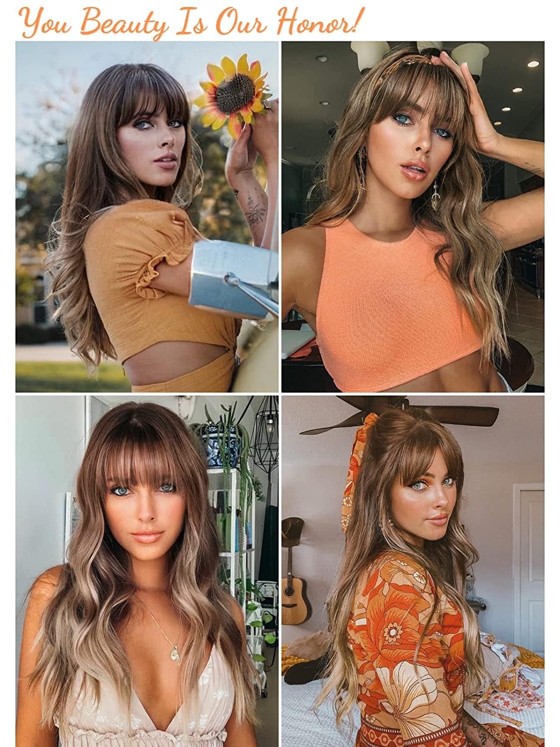Peruca lunga ondulata maro deschis cu suvite ofera volum si stil modern