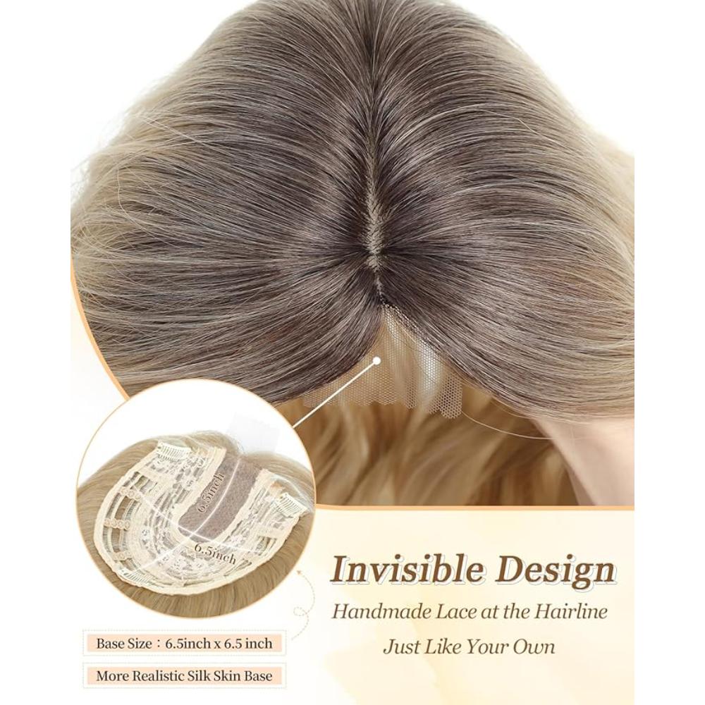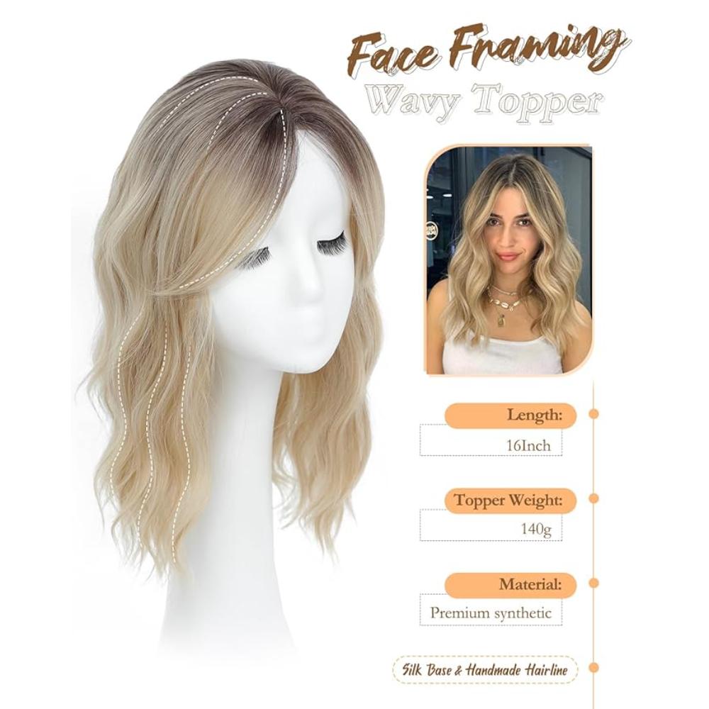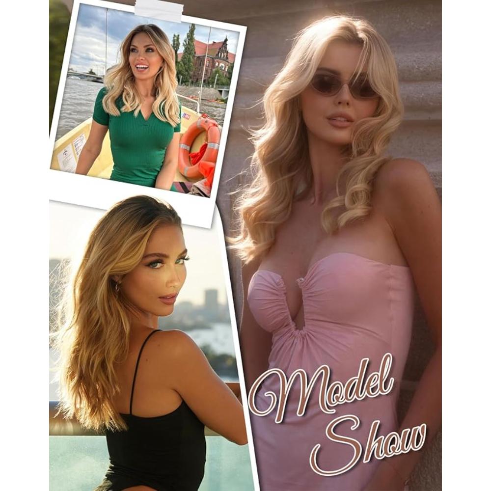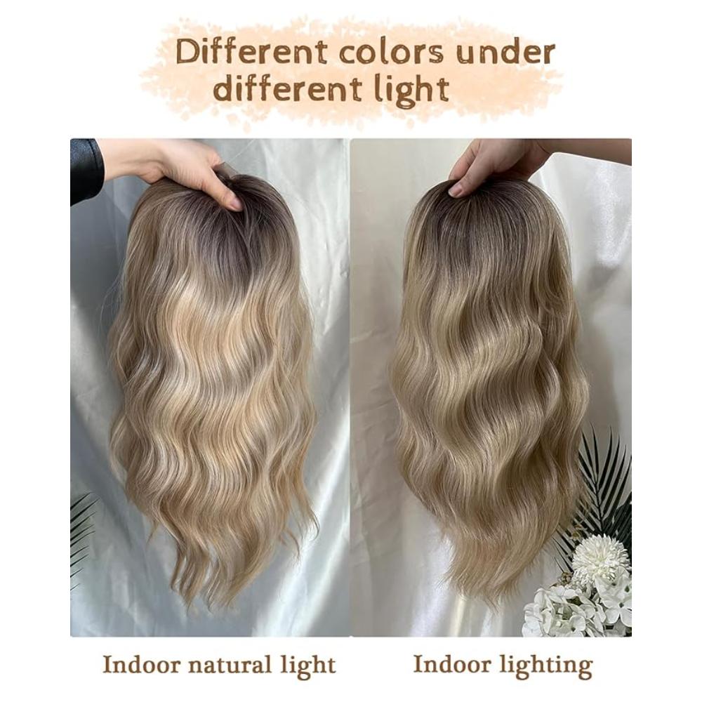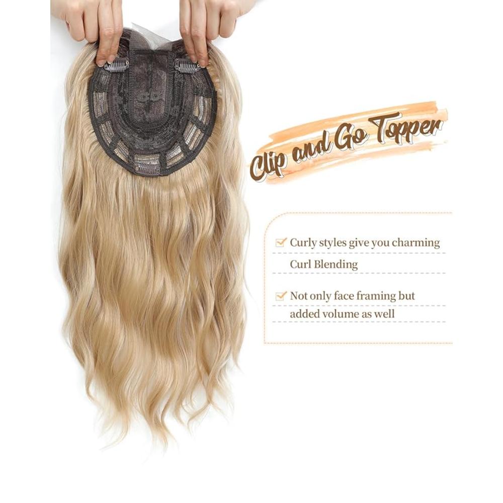 Peruca ondulata cu clips pentru femei, de la radacina inchisa la blond, 40 cm