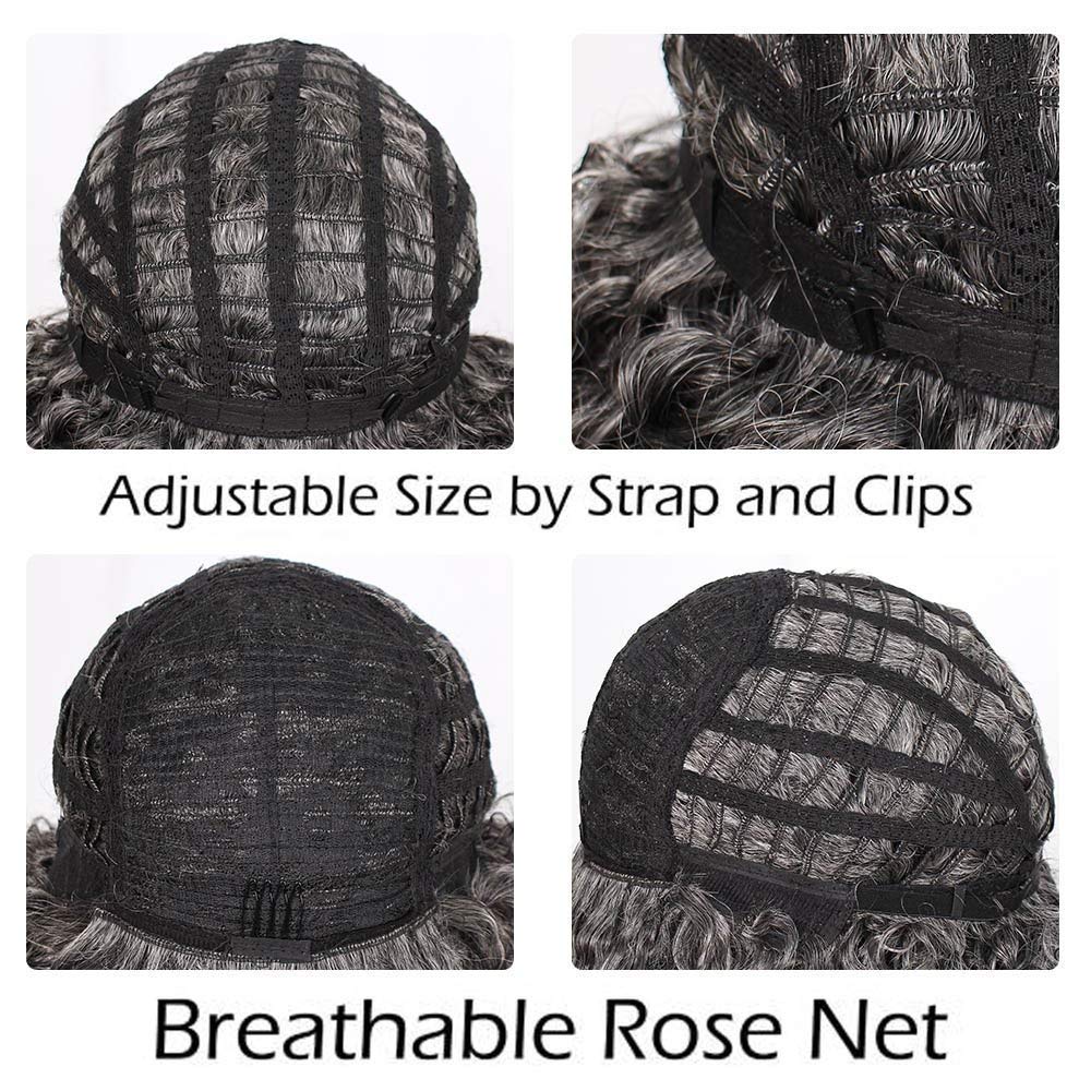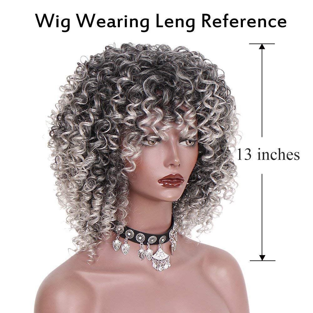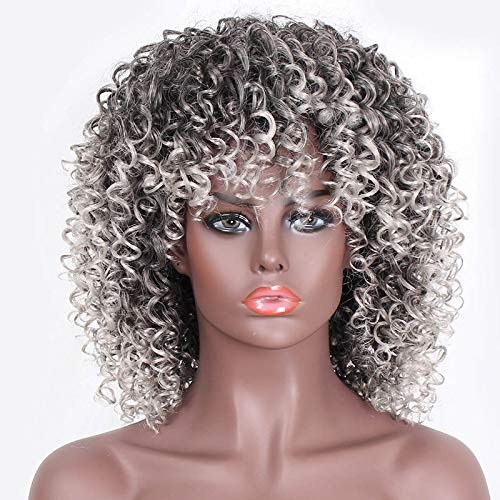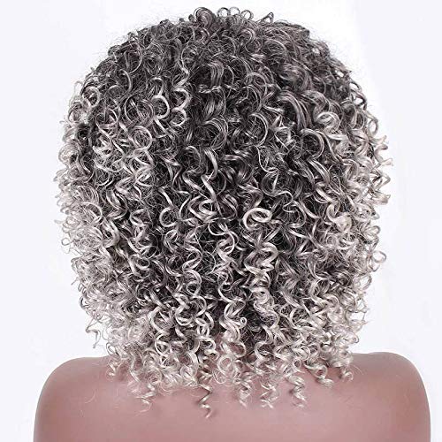 Peruca scurta, afro, creata, sintetica, pentru femei, 33 cm, gri