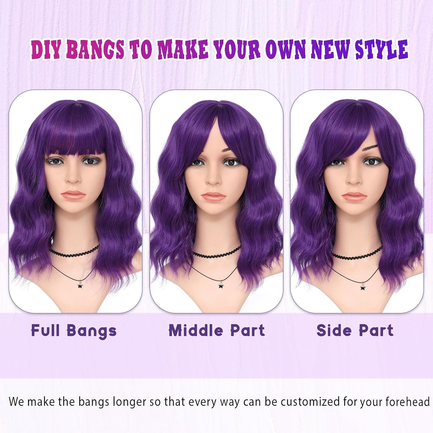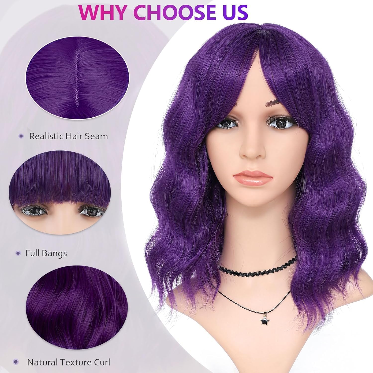 Peruca scurta bob ondulata mov inchis cu suvite 35 cm este perfecta pentru un look indraznet si elegant. Design modern cu volum natural si suvite care adauga profunzime culorii. Par sintetic de calitate, usor de intretinut.
