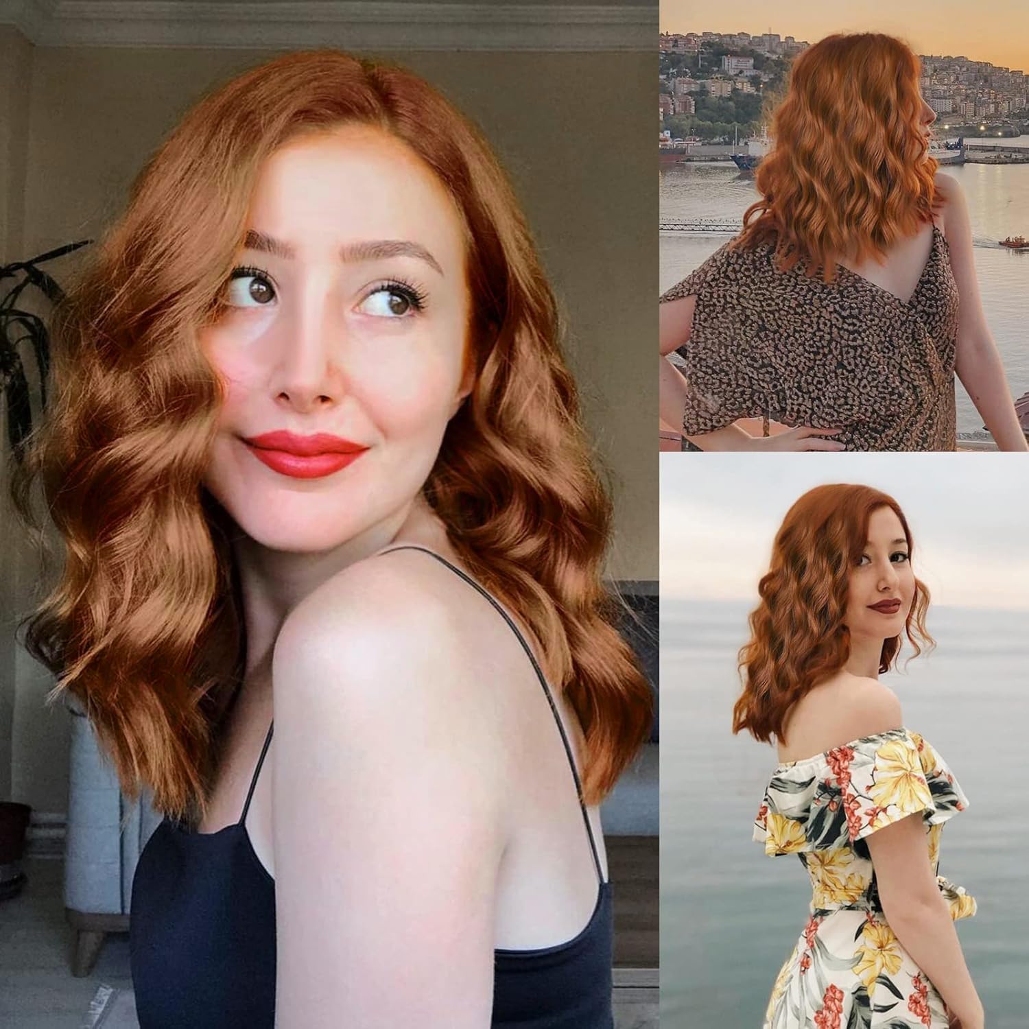 Peruca scurta ondulata bob castaniu par sintetic 35 cm ofera un look elegant si natural, perfect pentru utilizare zilnica sau ocazii speciale. Stilul bob modern combinat cu textura ondulata adauga volum si rafinament. Nuanta castaniu este versatila si usor de asortat, iar lungimea de 35 cm este practica si confortabila. Parul sintetic de calitate se intretine usor si isi pastreaza forma frumoasa.