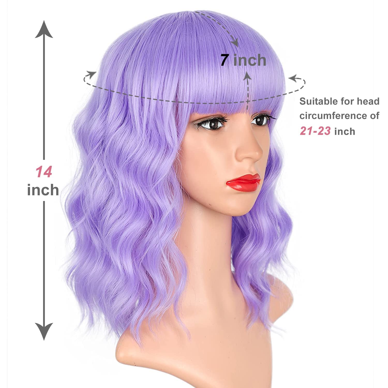 Peruca sintetica, pentru femei, cu breton, ondulata, violet deschis