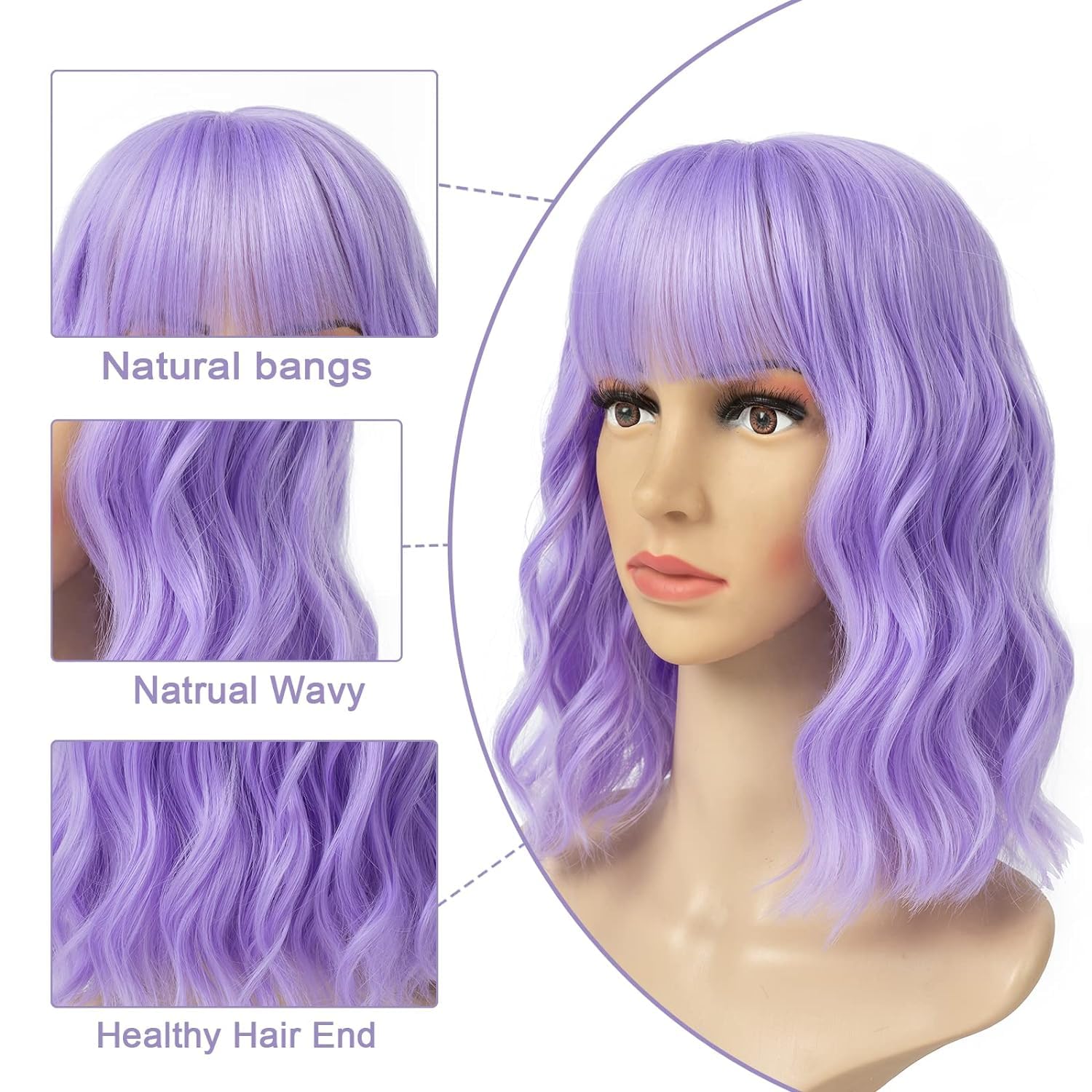 Peruca ondulata violet deschis cu breton sintetica este ideala pentru un look modern si indraznet. Par sintetic de calitate, cu volum natural si textura ondulata, usor de purtat si intretinut. Bretonul completeaza stilul si incadreaza frumos fata. Perfecta pentru utilizare zilnica sau evenimente.