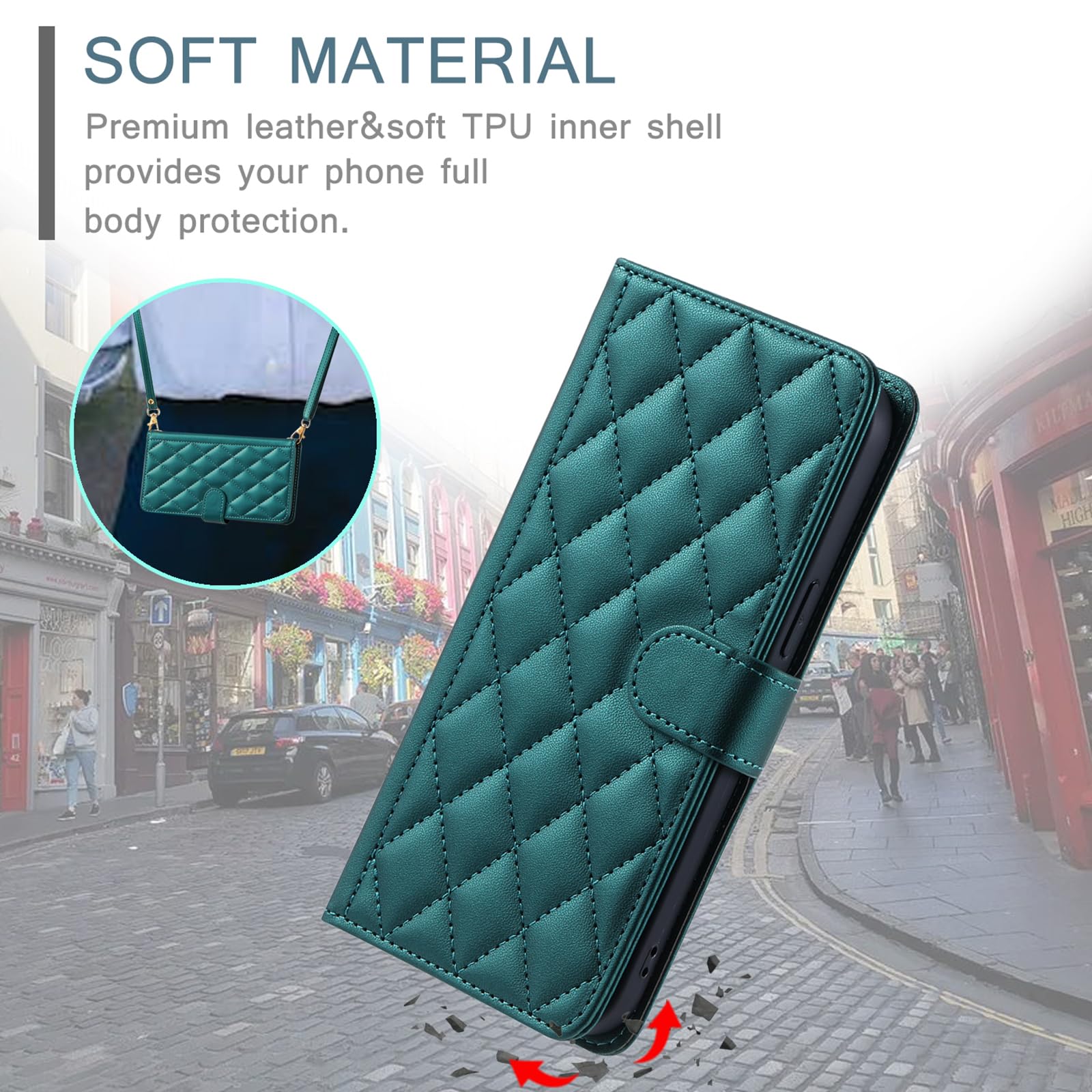 Portofel tip poseta, cu husa telefon din piele compatibila cu Samsung Galaxy S25 Plus, cu oglinda, cu clapa, slot pentru card, curea crossbody, buzunar cu fermoar, pentru femei, gri