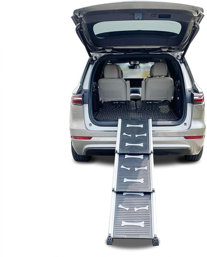 Rampa telescopica pliabila pentru caini, capacitate de incarcare 70 kg, 71 cm – 156 cm, din aliaj de aluminiu, usoara, cu suprafata antiderapanta