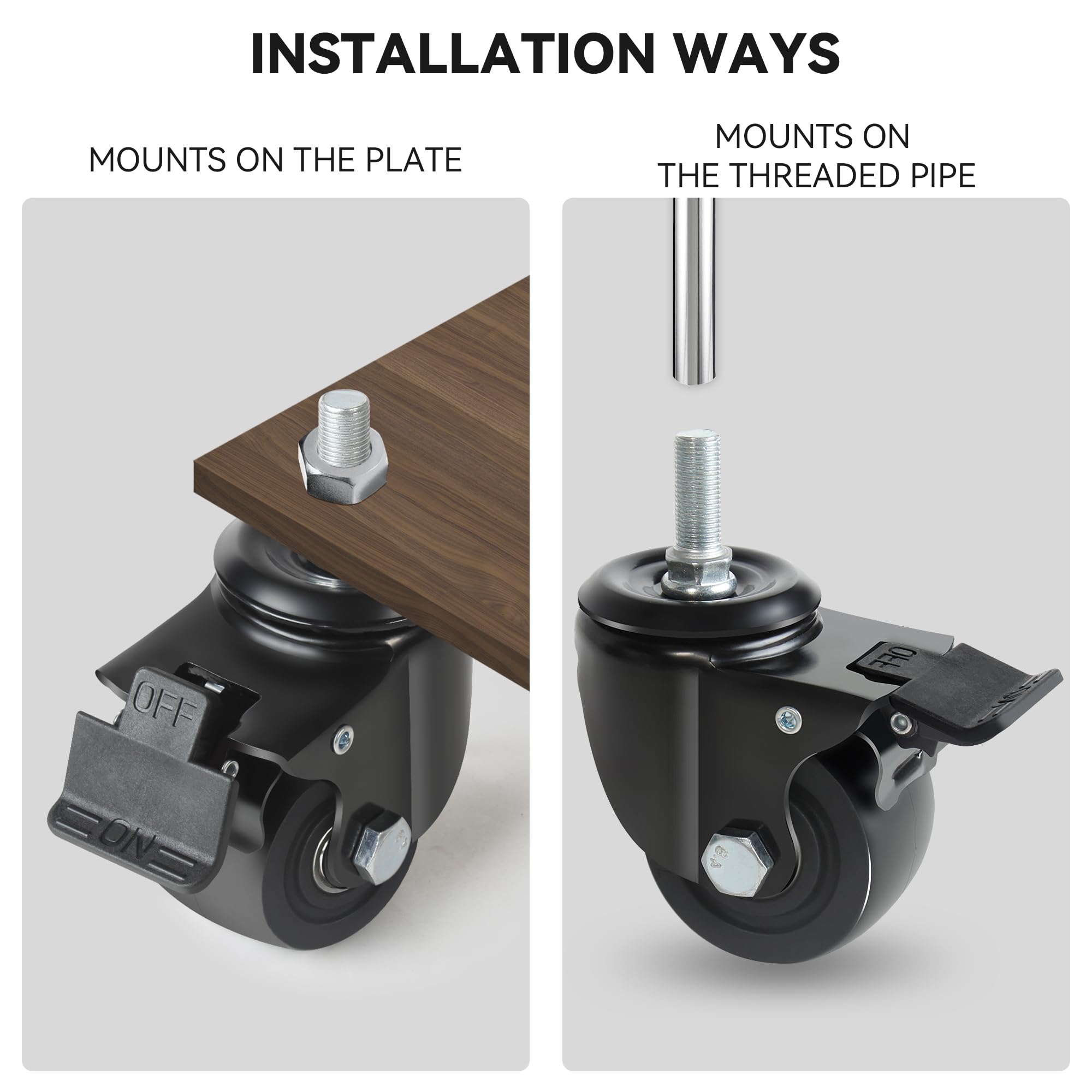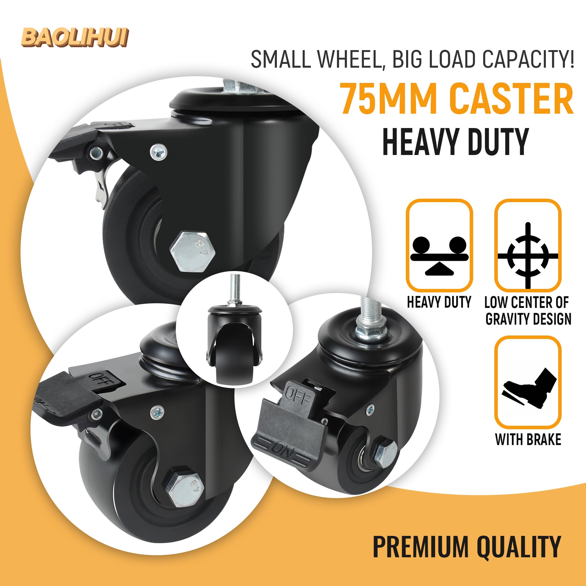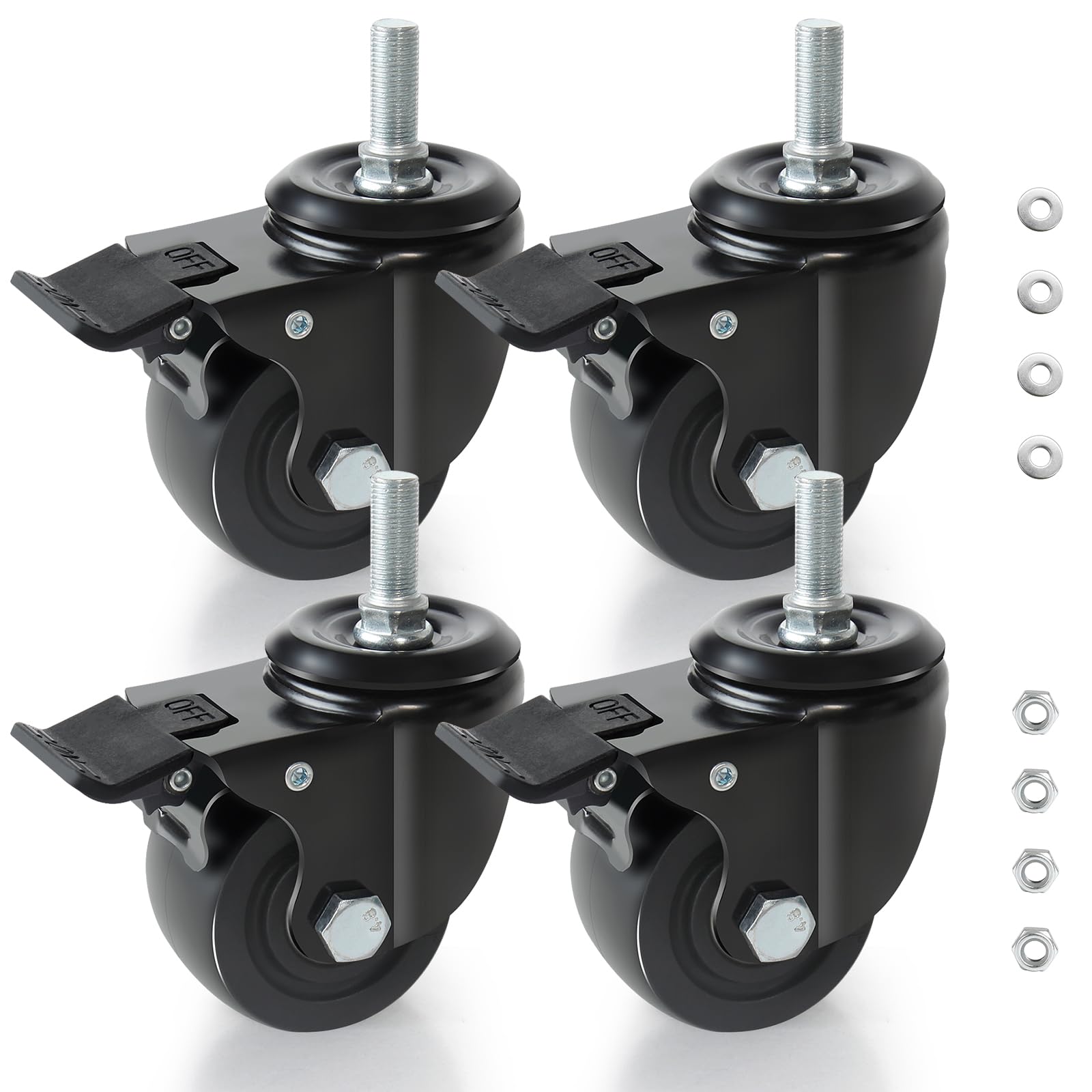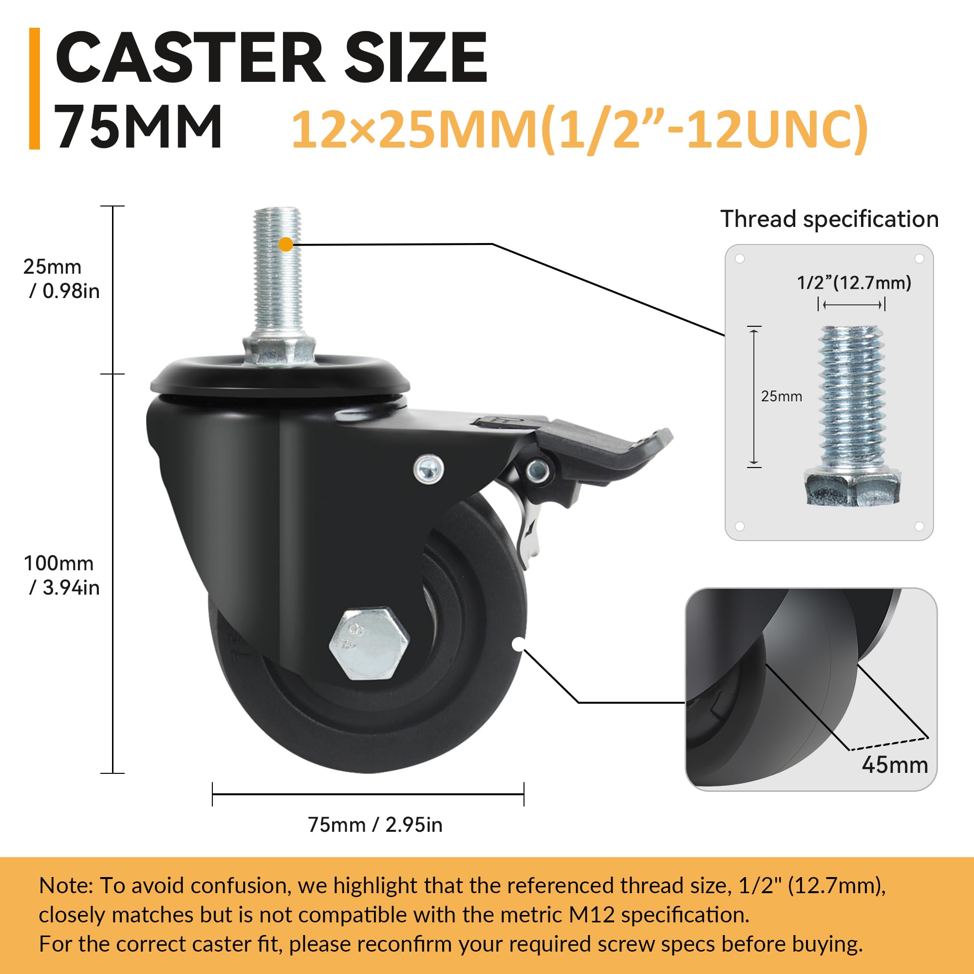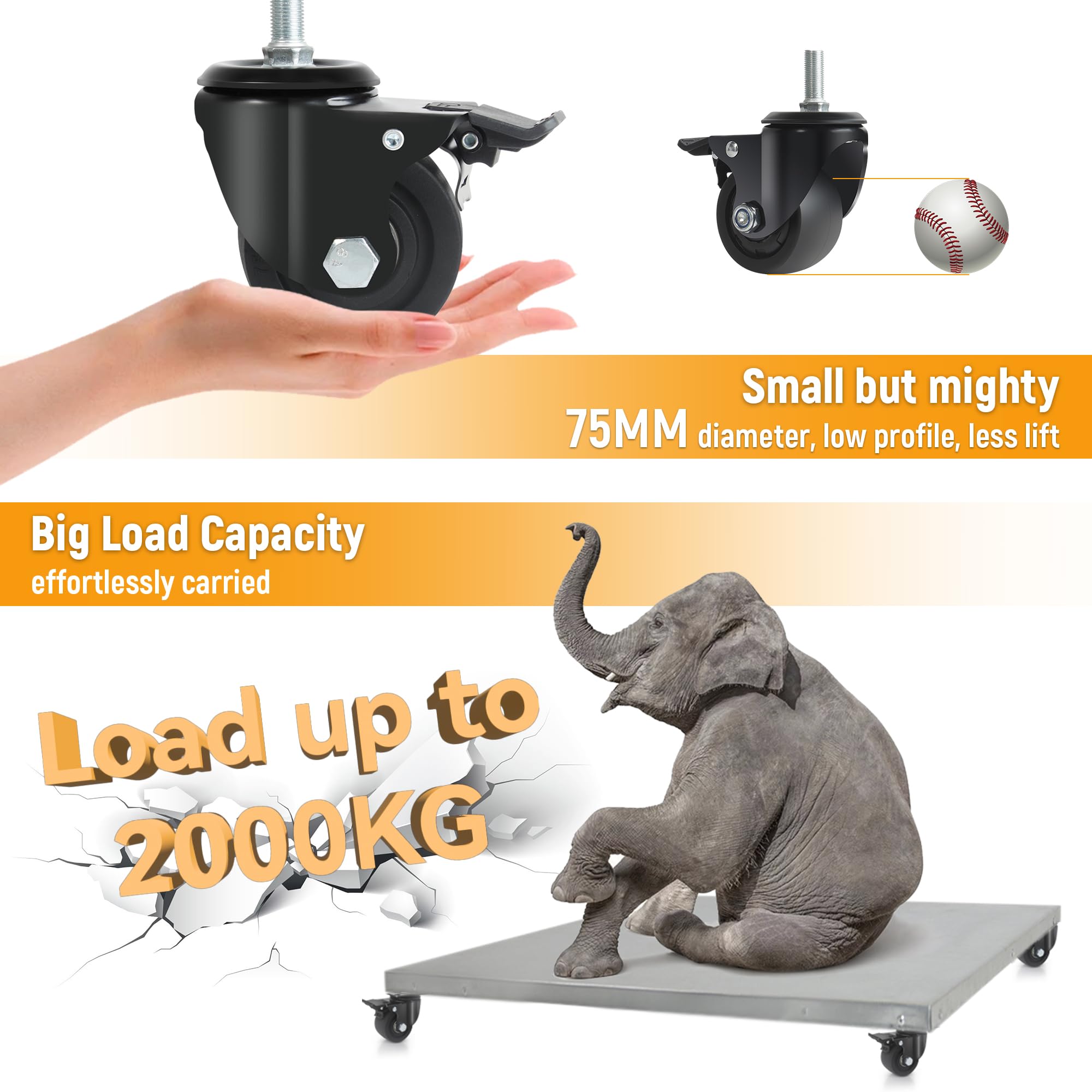 Roti rezistente, 75 mm, 12 mm × 25 mm, pivotante, cu frana, capacitate 2000 kg, 4 buc