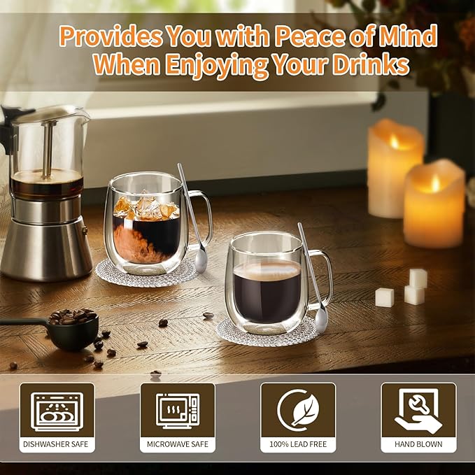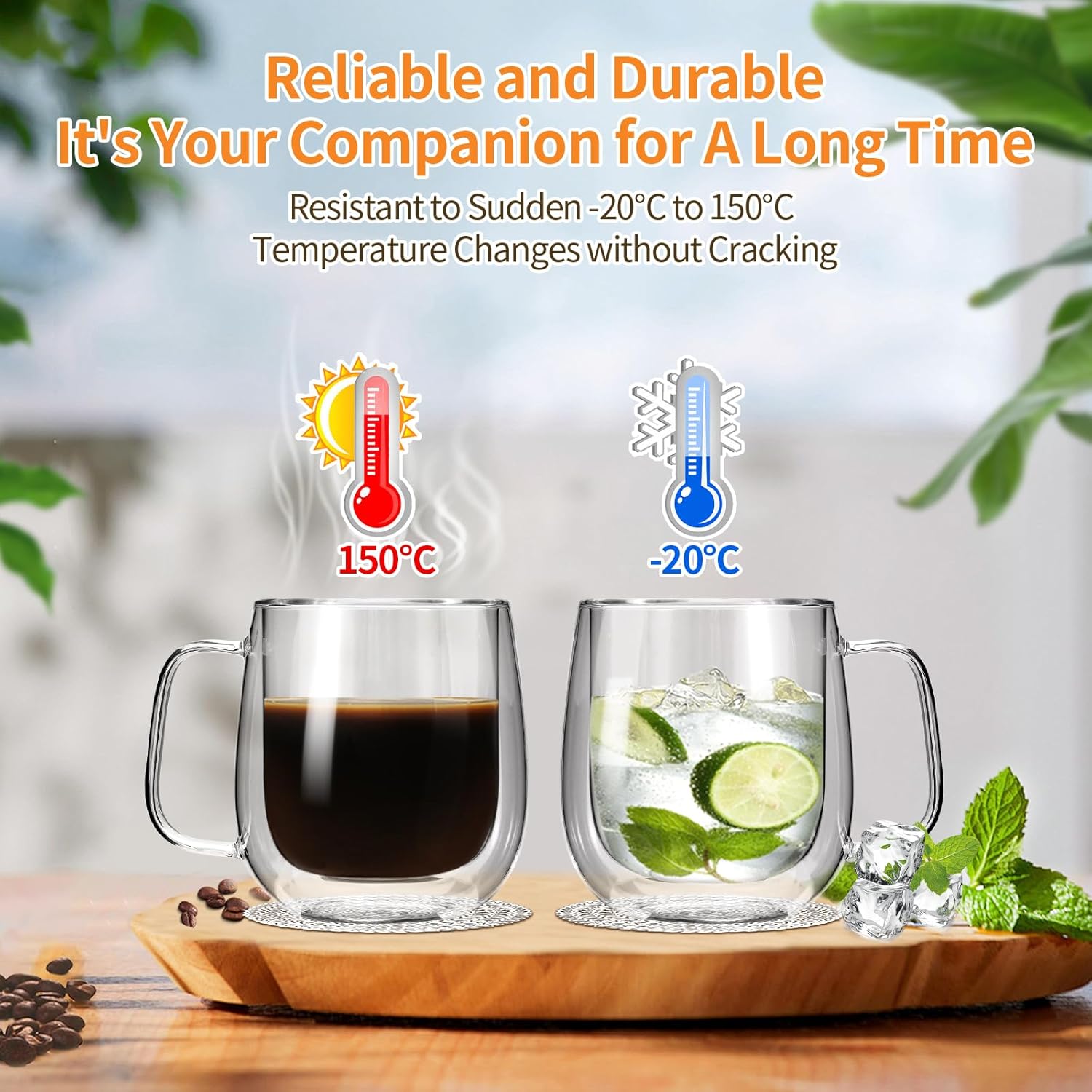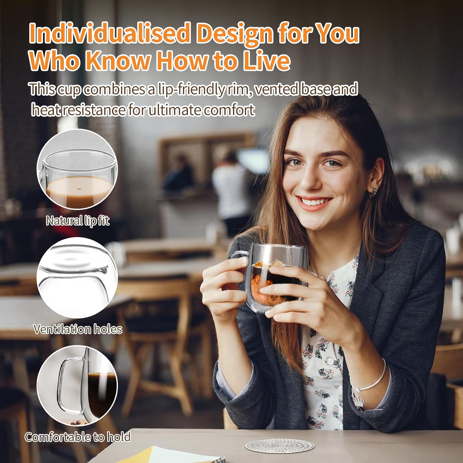 Set 2 x cana de sticla cu perete dublu, 220ml, pentru cafea, ceai, etc