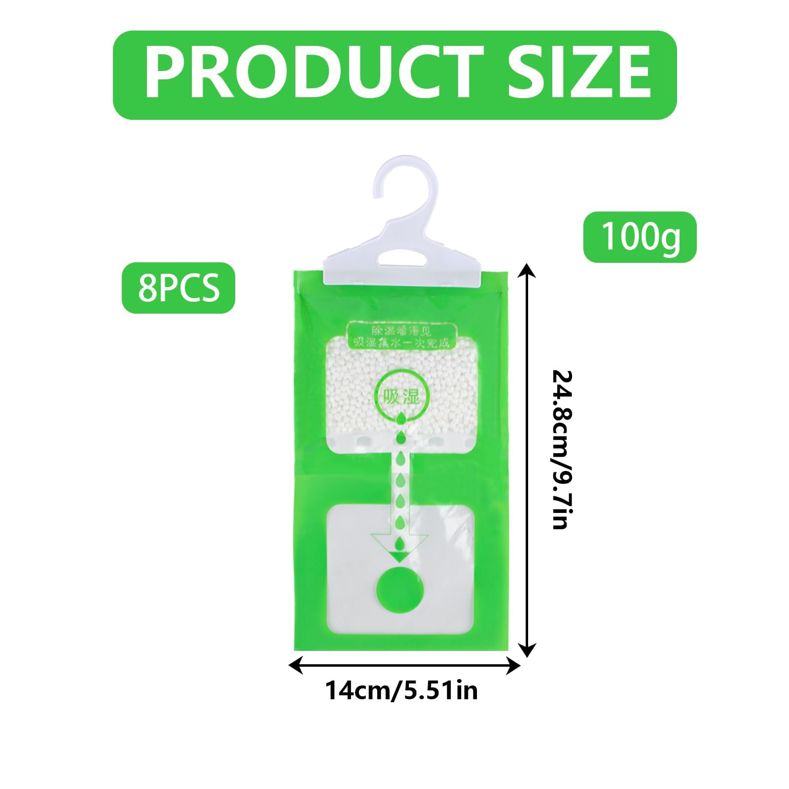 Set 8 saculeti desicanti de 100 g pentru dulap, cu agatatoare, pentru dezumidificare, anti-mucegai
