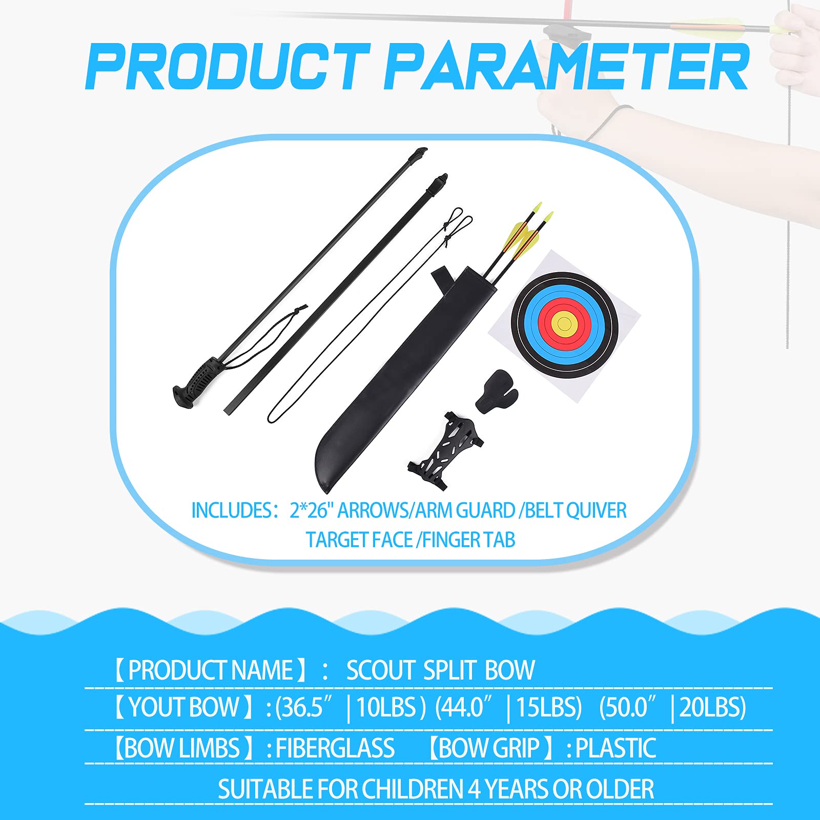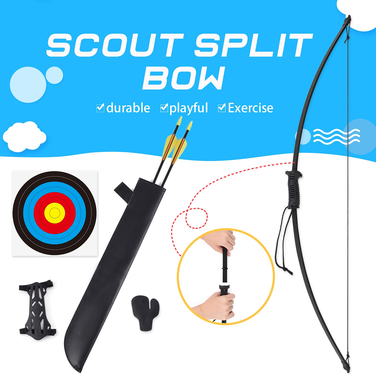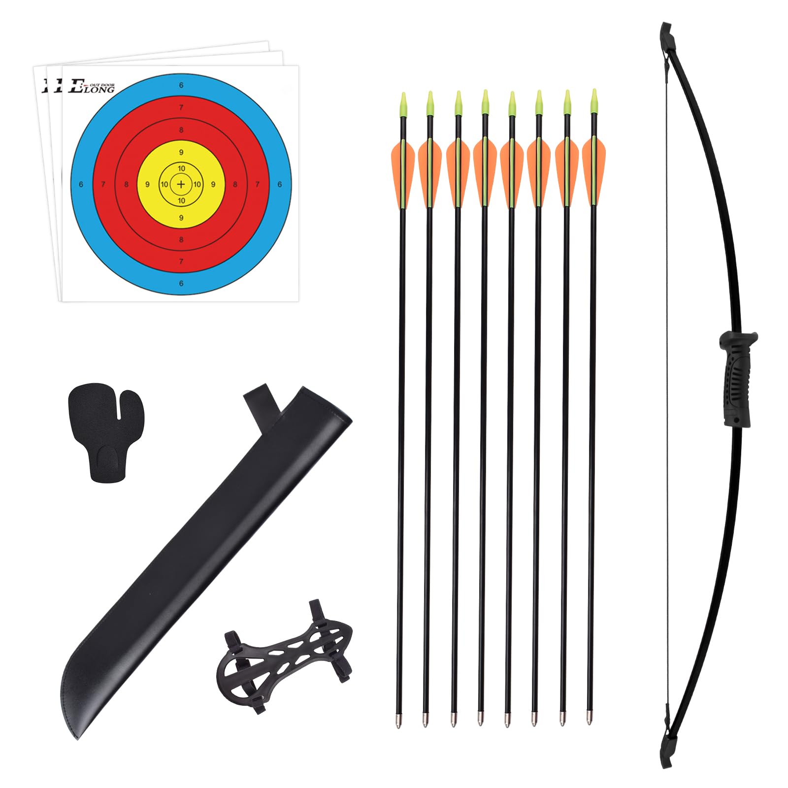 Set arc recurv pentru copii, cu tolba, 66 cm, 8 sageti, pentru varste de 12+