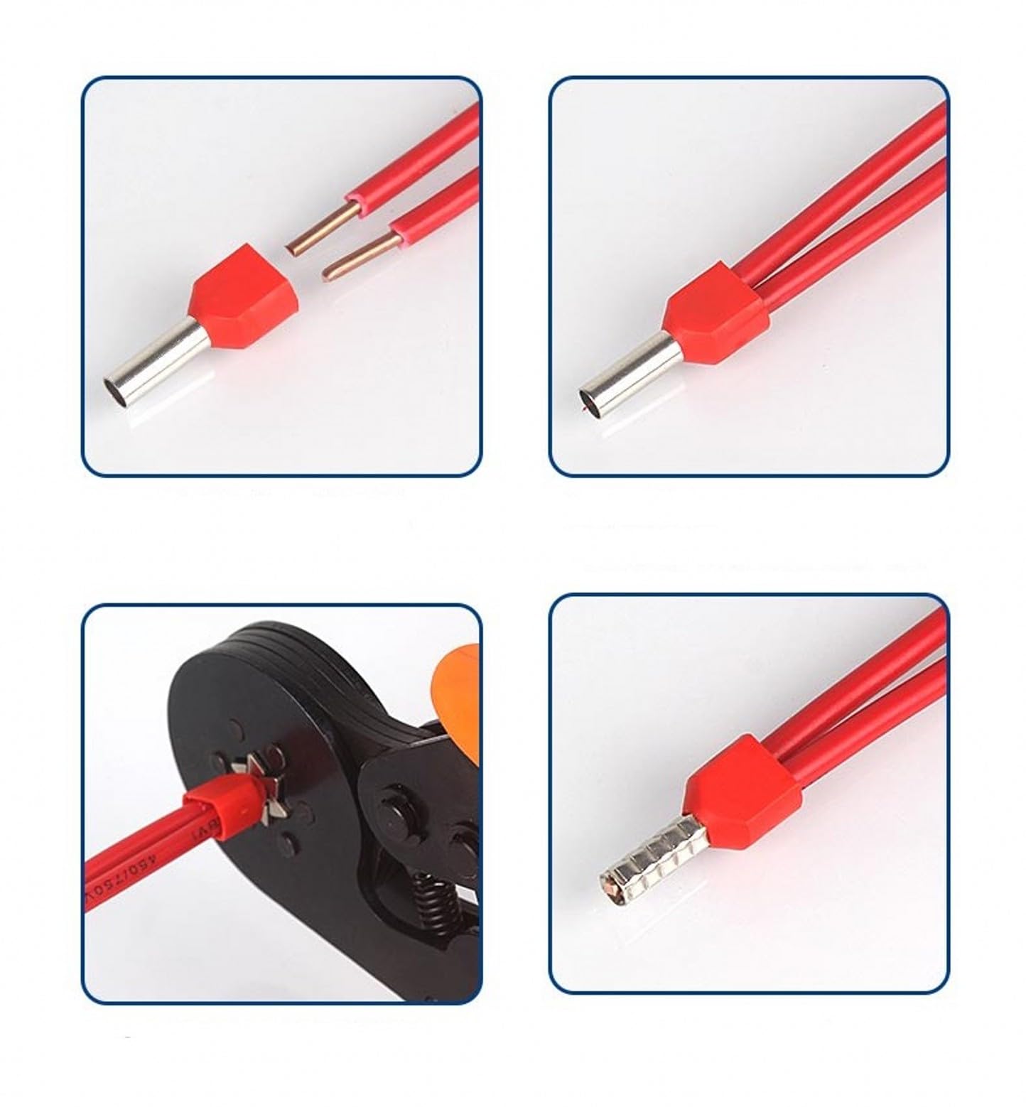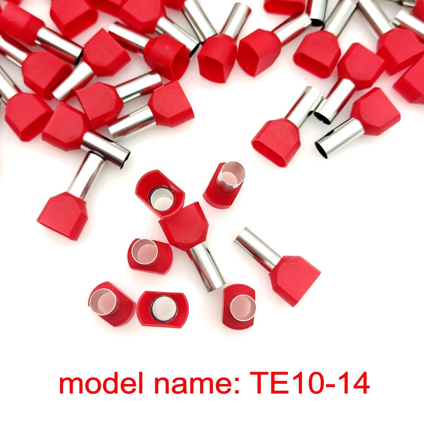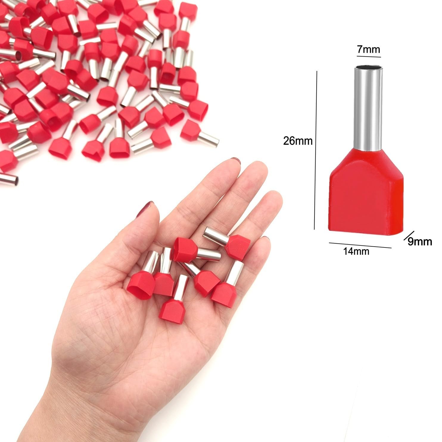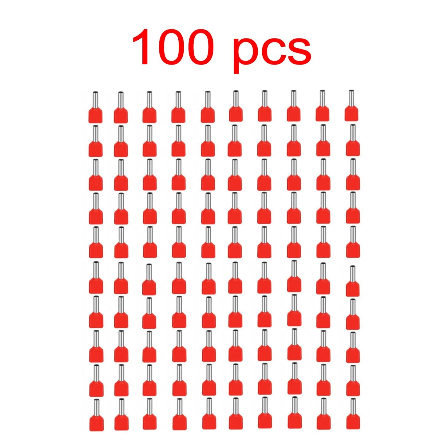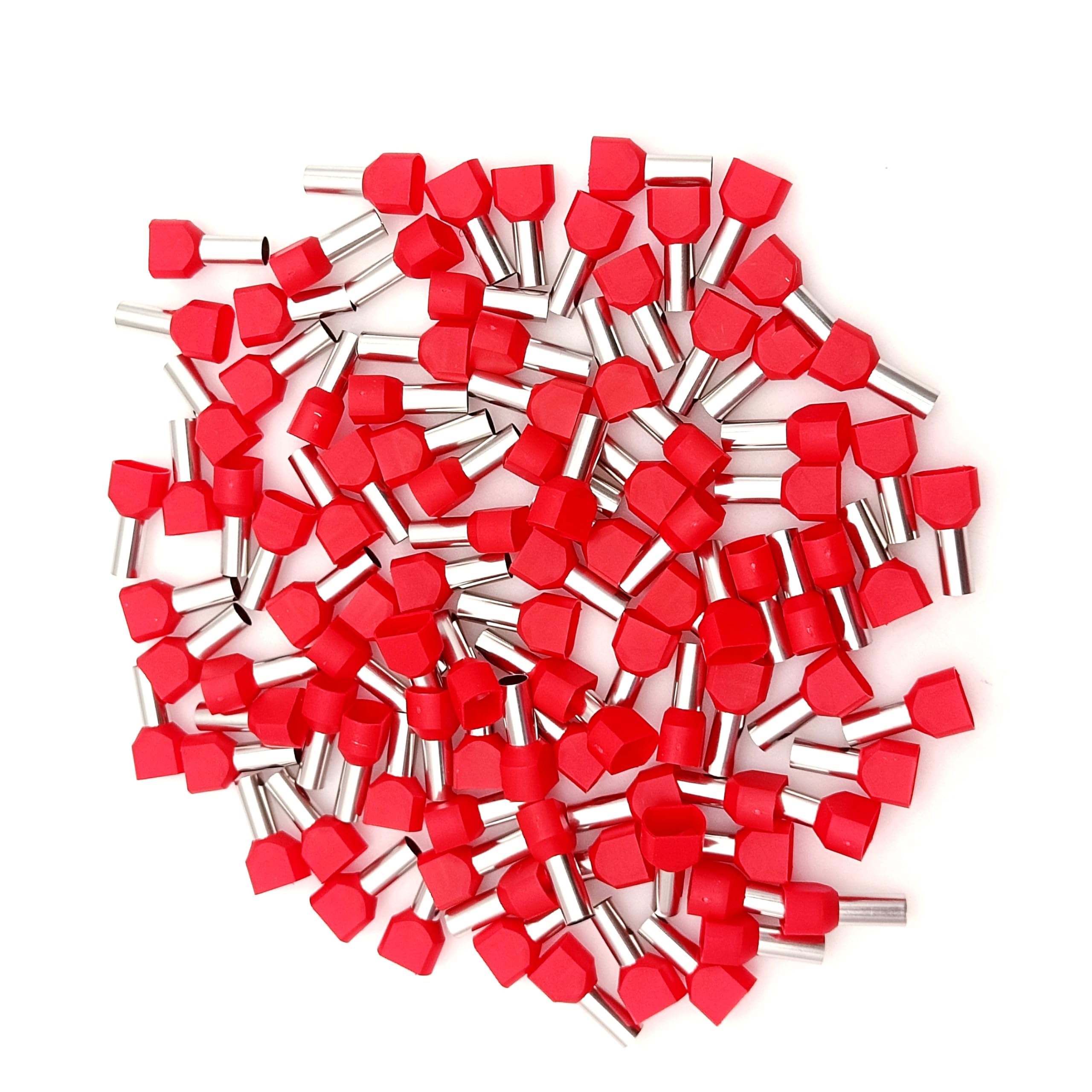 Set de 100 ferule izolate pentru doua fire, diametru 6mm2, roșii