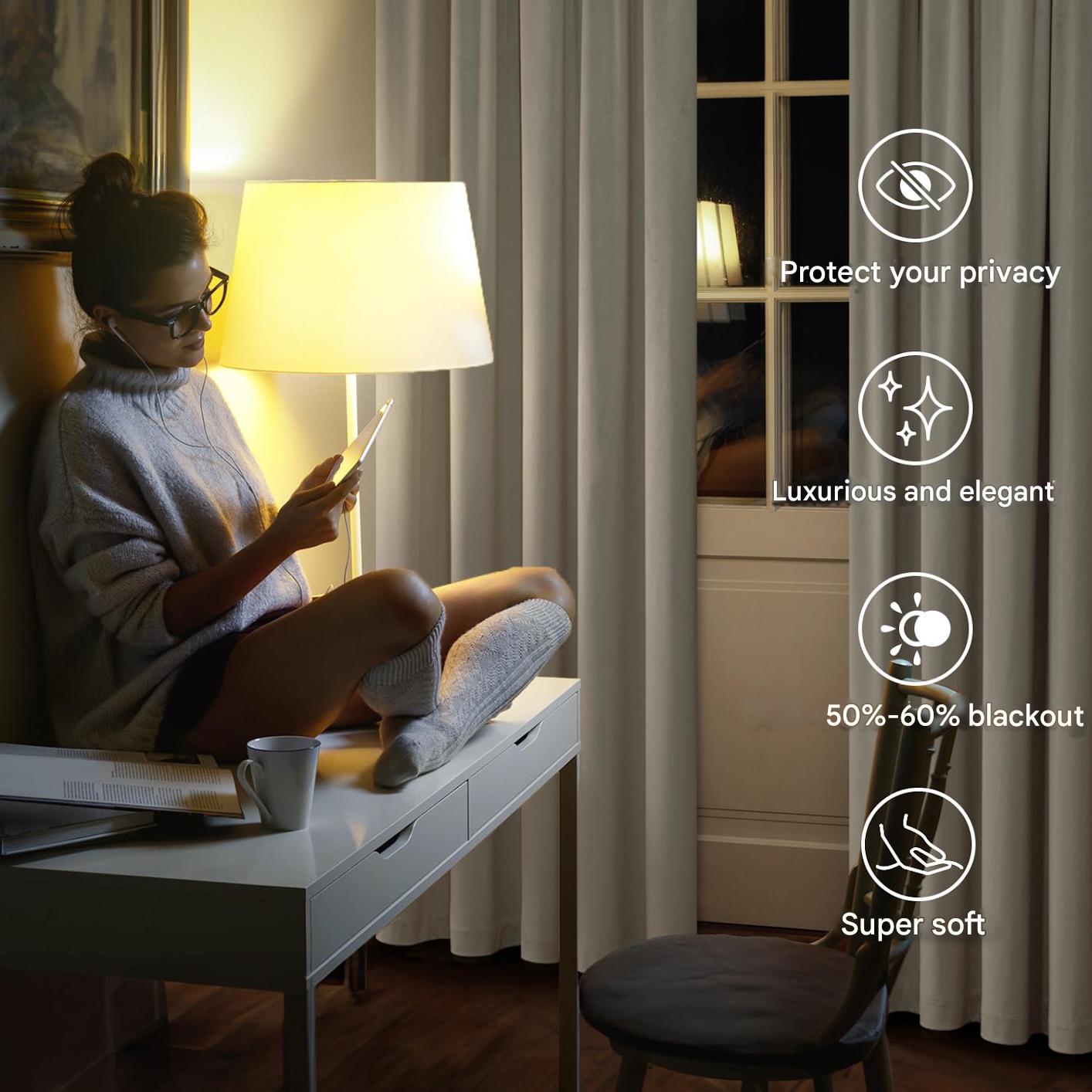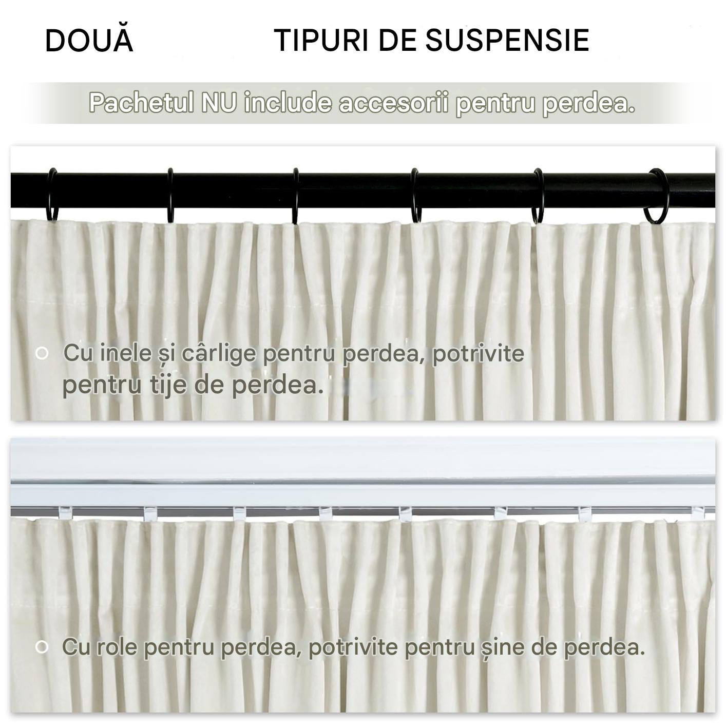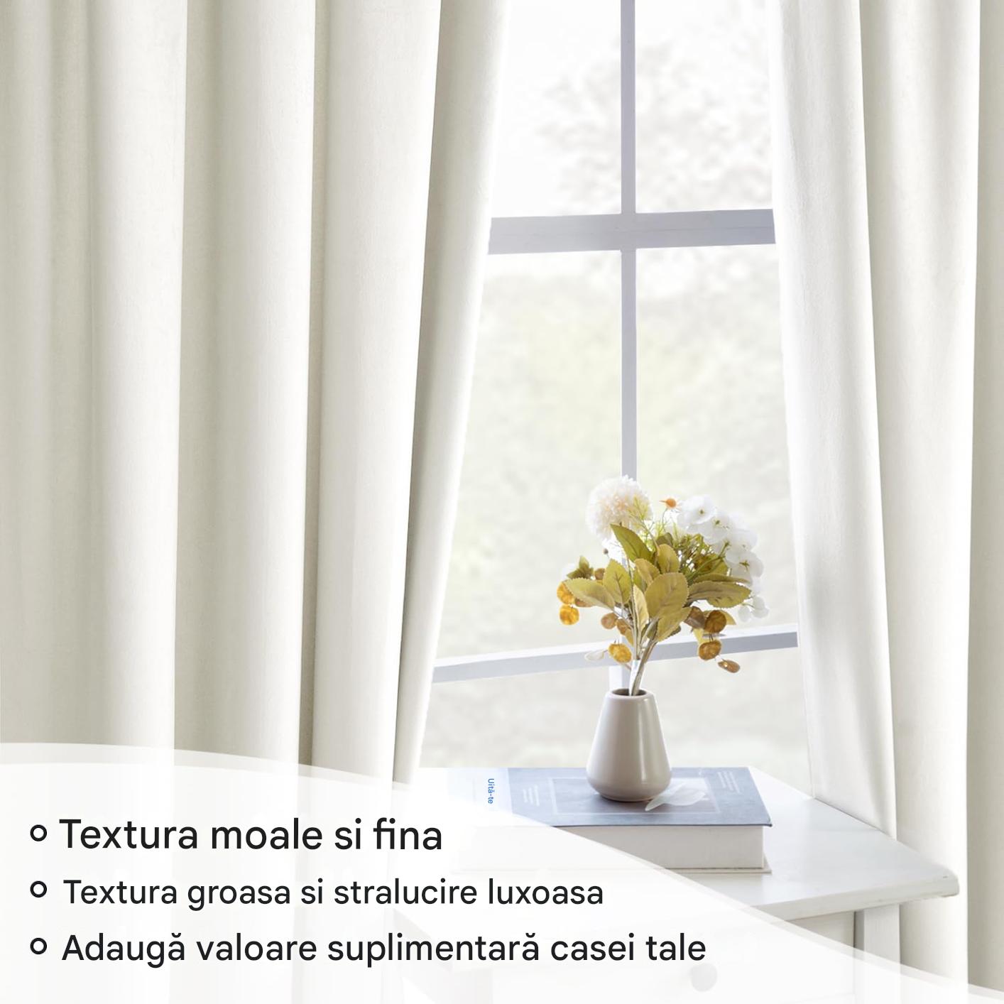 Set de 2 draperii din catifea, opace, termoizolante, alb-ivoriu, 140×300 cm