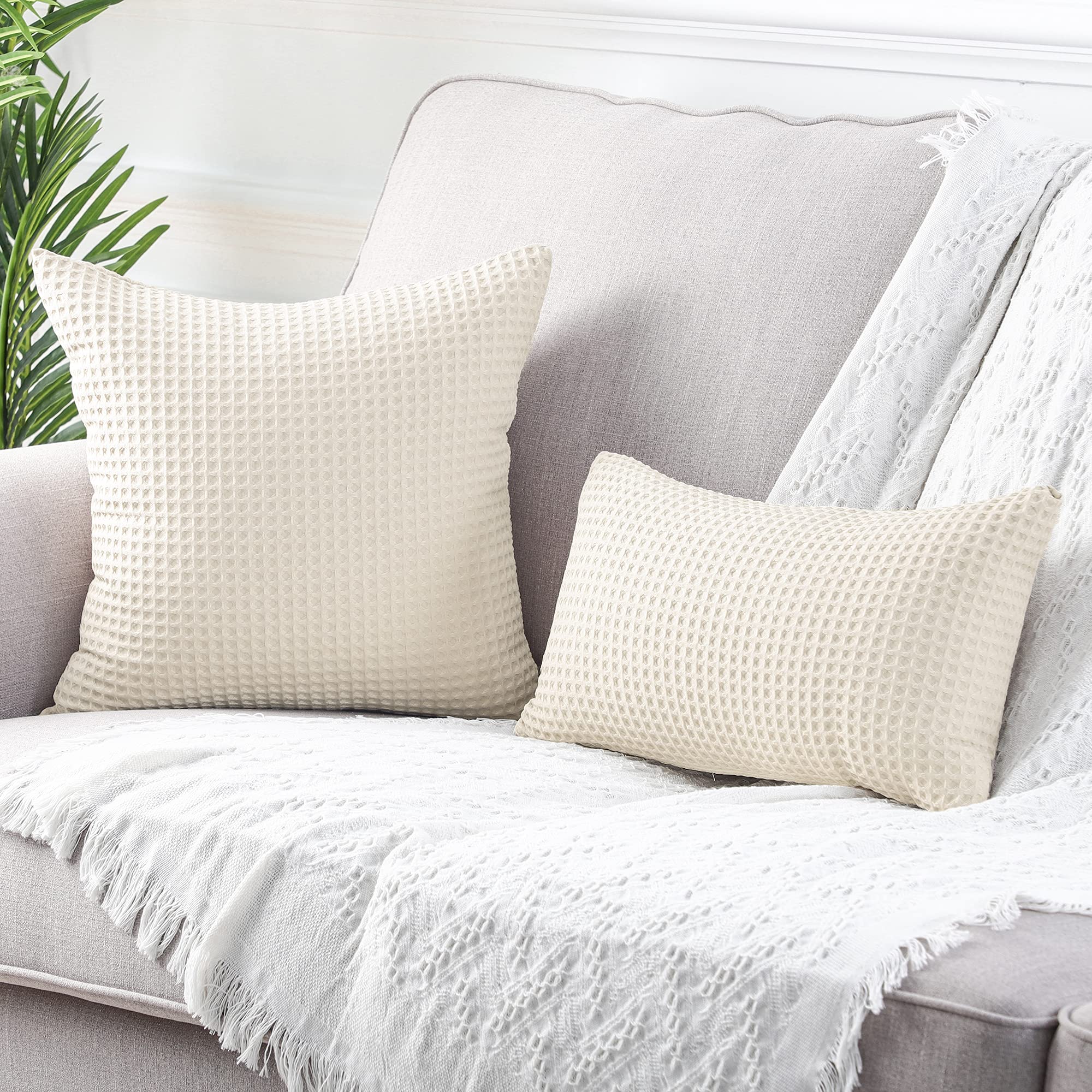 Set de 2 huse de perna decorative, cu textură Waffle Pique, 65×65 cm, bej
