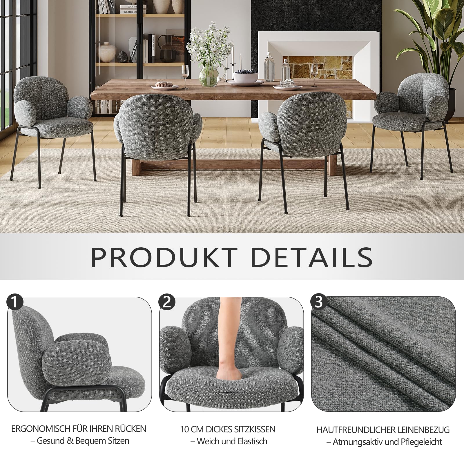 Set de 2 scaune de sufragerie moderne cu cotiere, bej