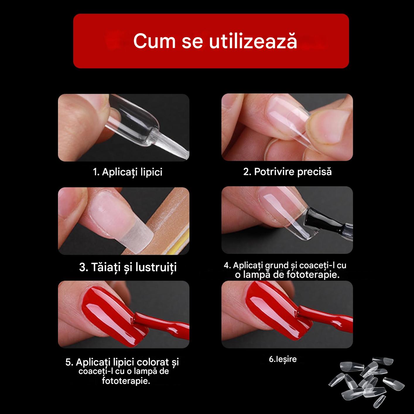 Set de 240 de varfuri complete pentru unghii, cu gel moale, 12 dimensiuni (transparente)