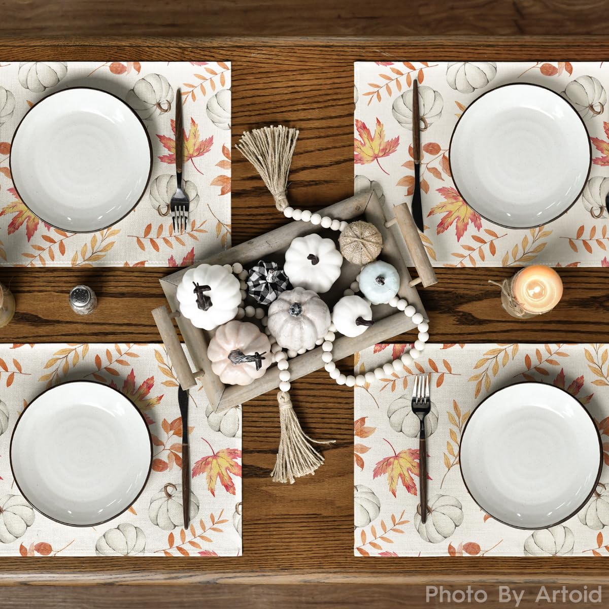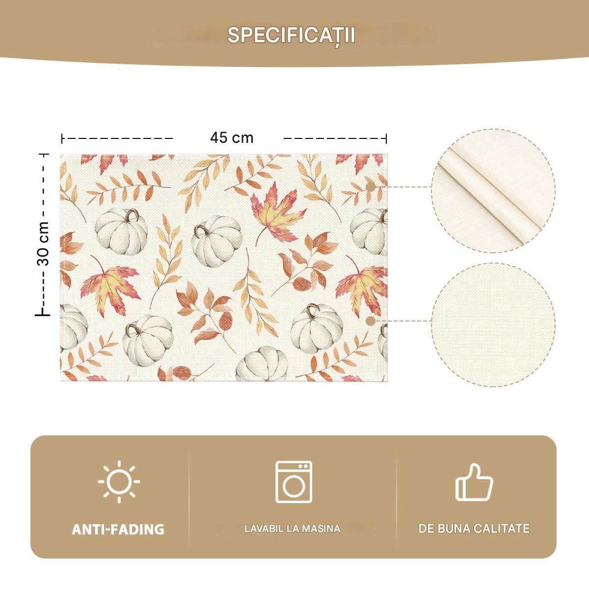 Set de 4 suporturi de masa, model de dovleac si frunze de artar, 30×45 cm
