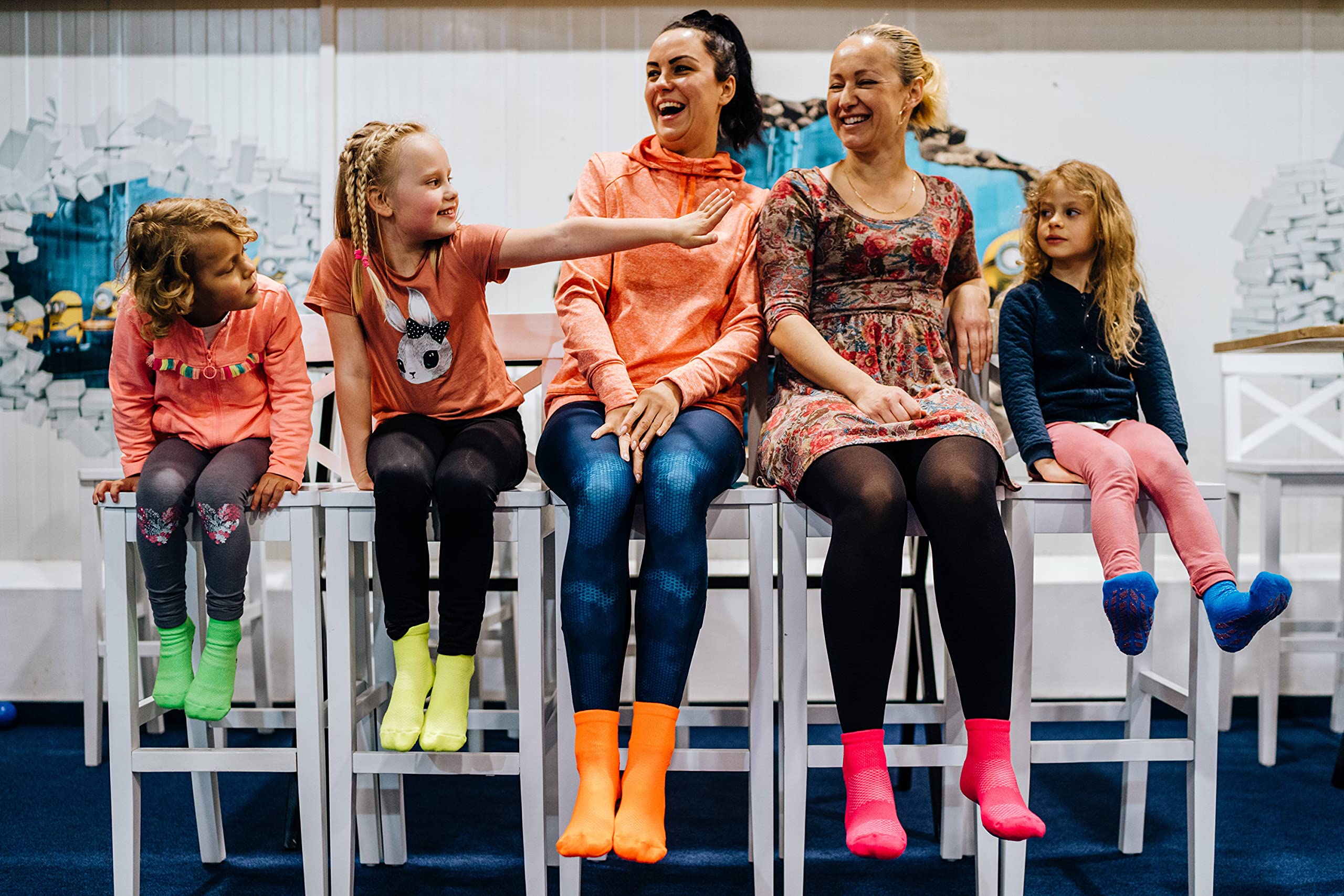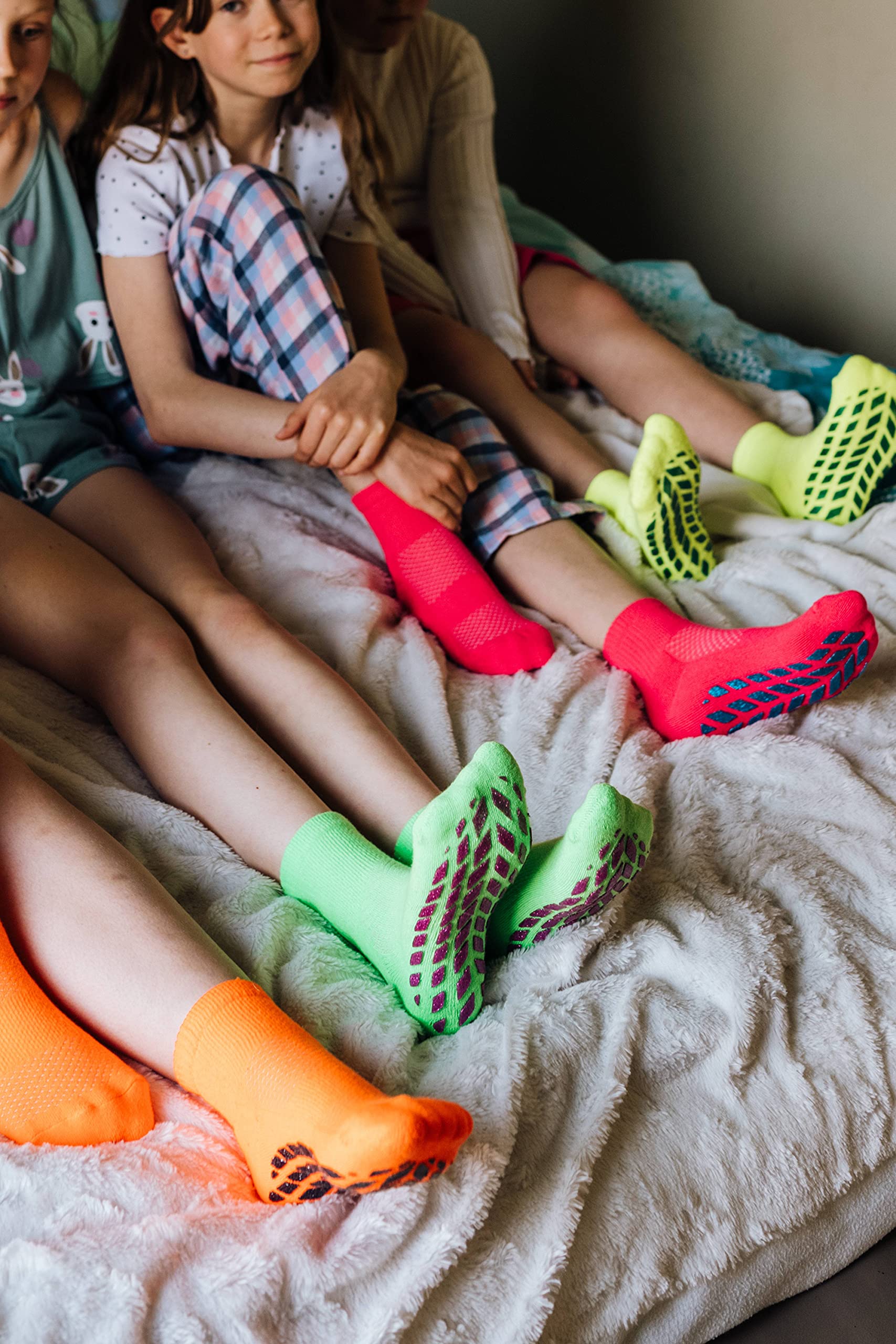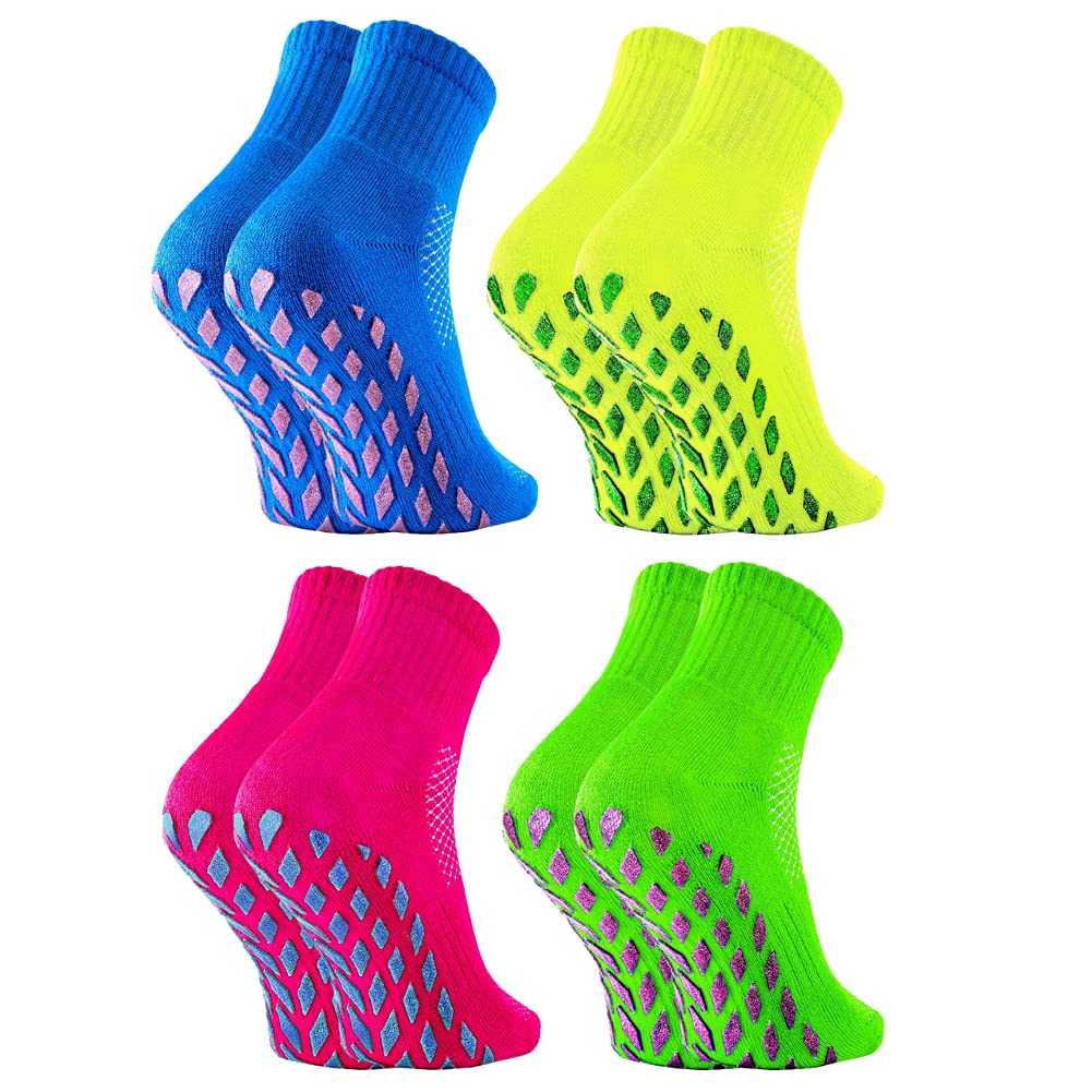 Sosete sport neon Sneaker din brocart pentru fete – 4 perechi – galben-verde-fuchsia-albastrele – marimi 30-35