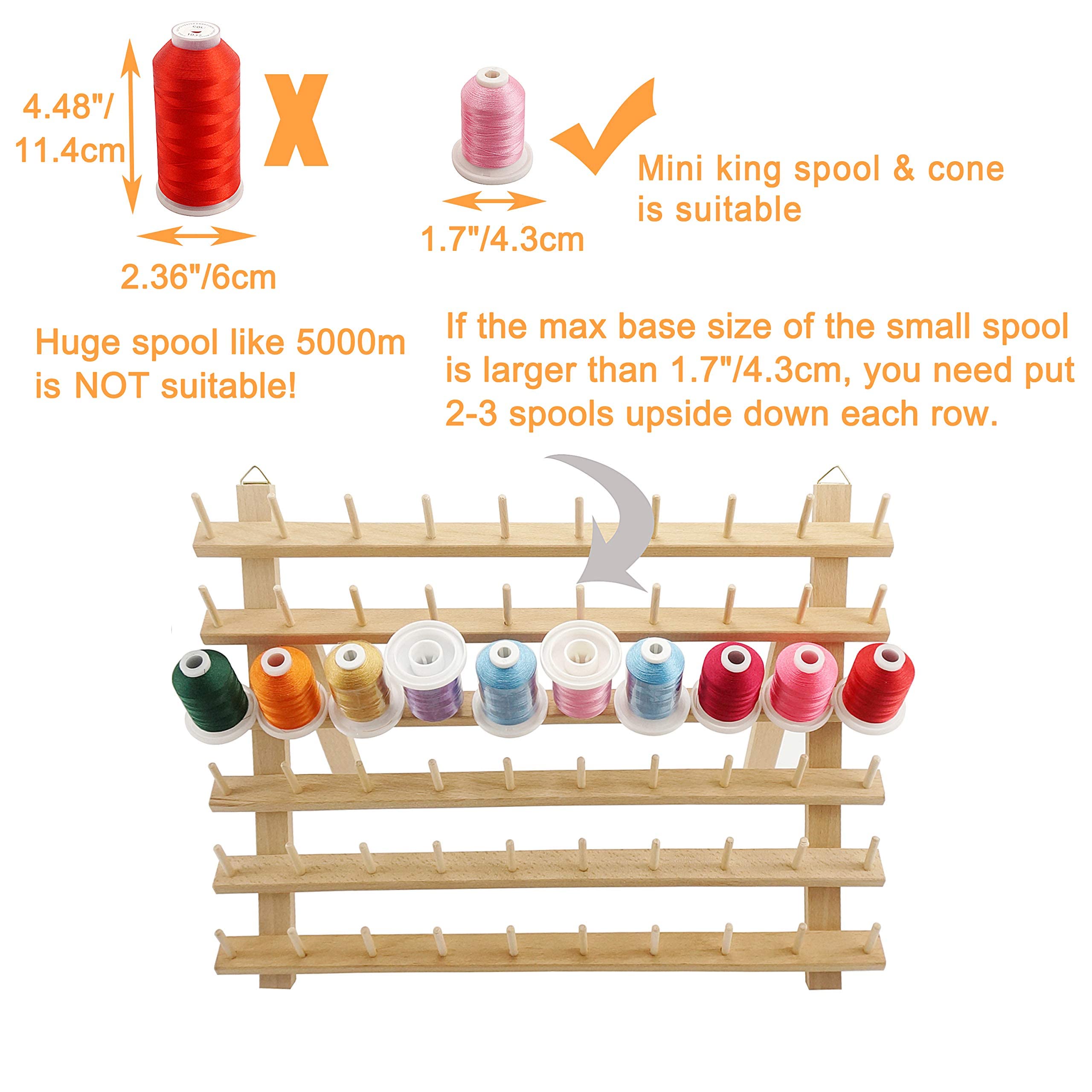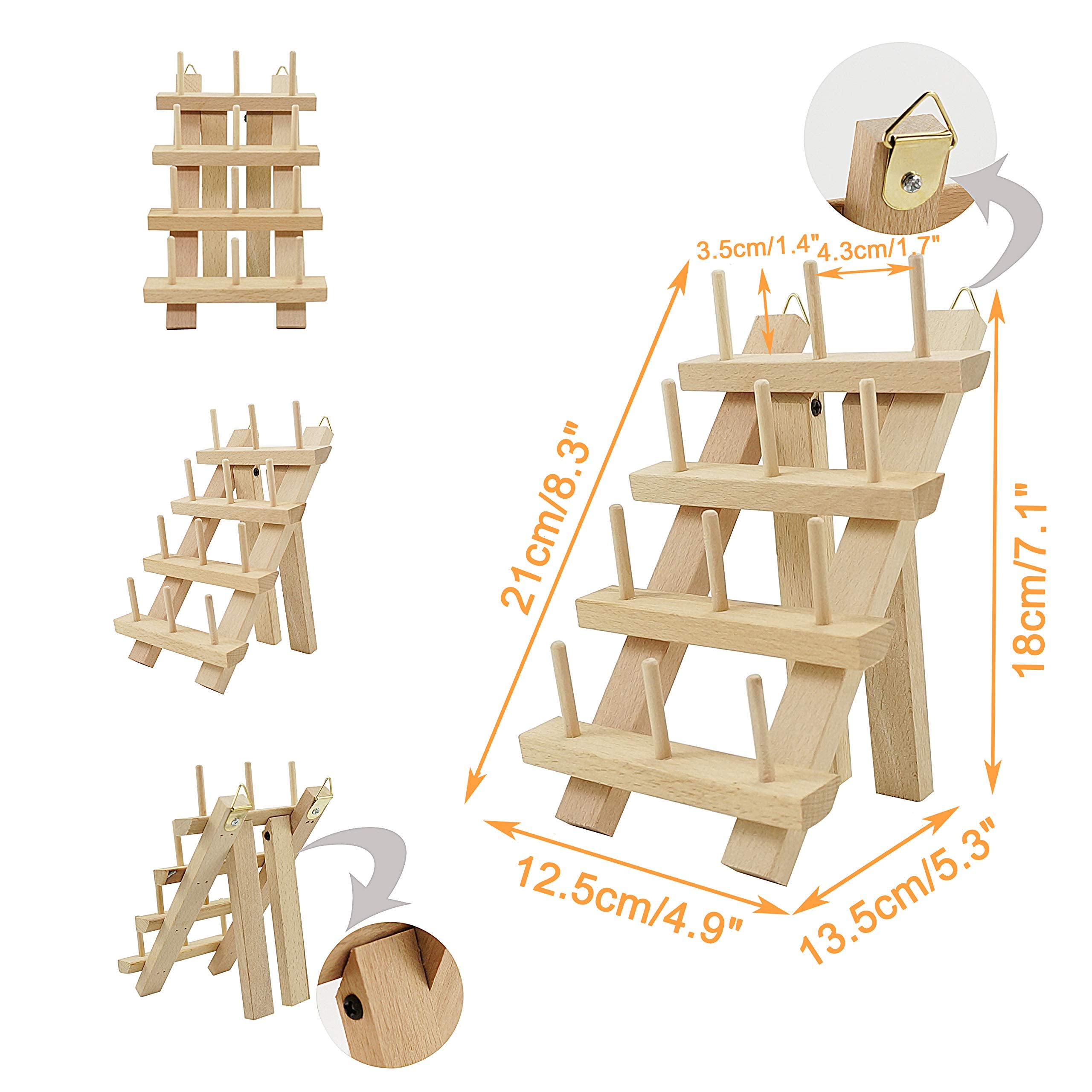 Suport de ata, din lemn, brothread cu 60 de bobine + 12 bobine/suport de fire/organizator de bobine, cu carlig, pentru broderie, matlasare, cusut, impletitura de par