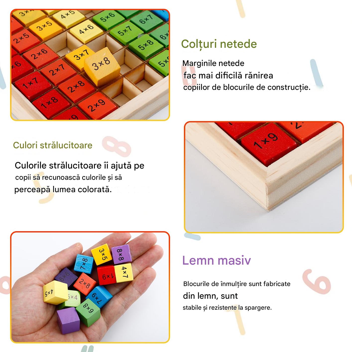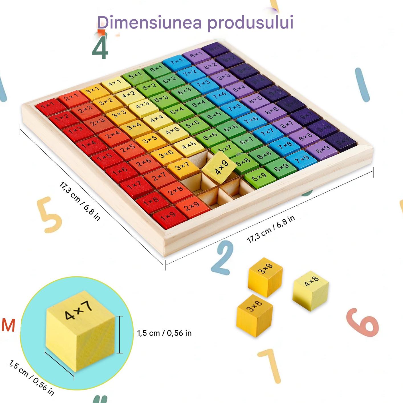 Tabla inmultirii Montessori pentru elevii de ciclu primar, lemn colorat