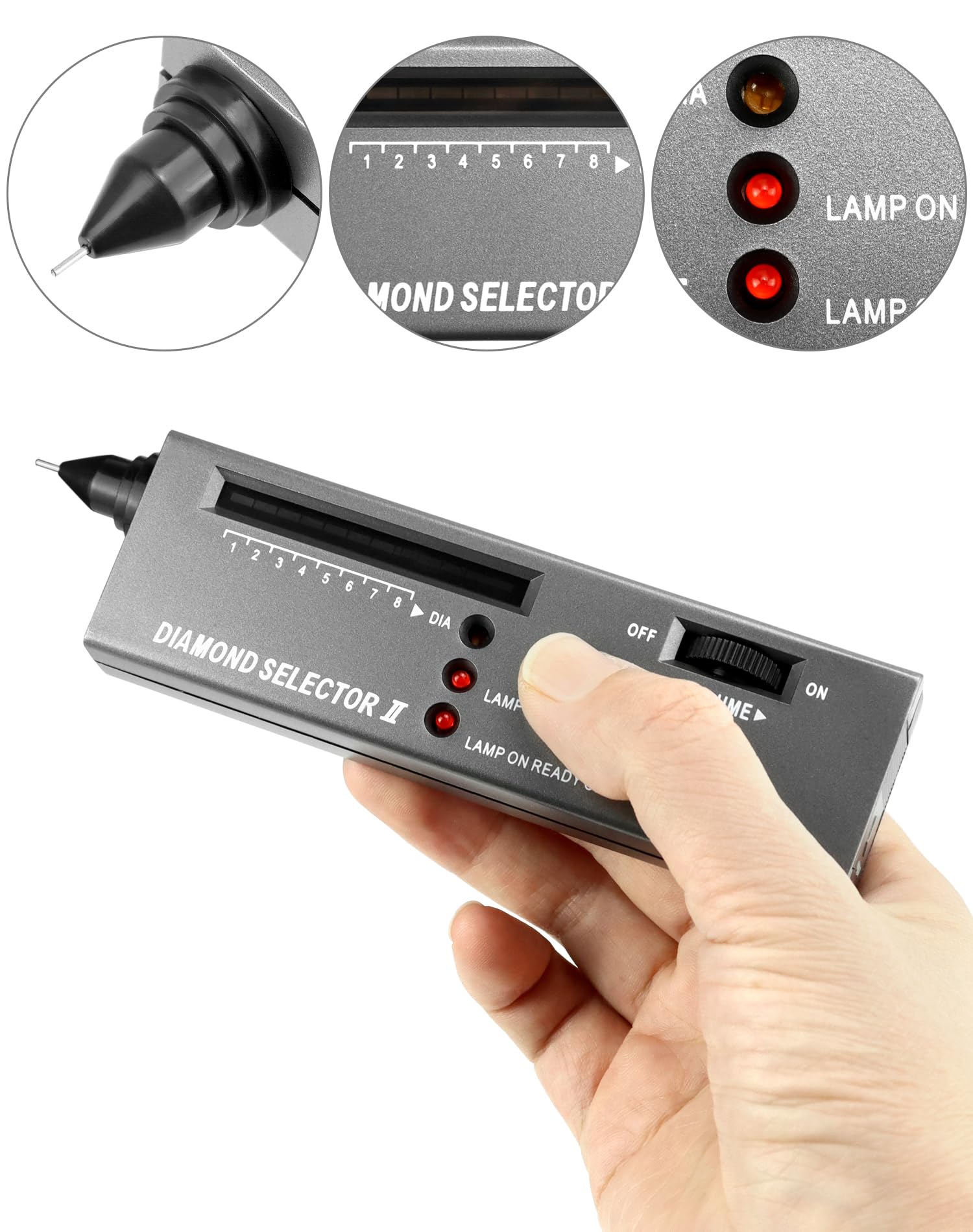 Tester de diamante de inaltă precizie QWORK® V2 pentru pietre pretioase – Detecteaza originalitatea diamantului, safirului, rubinului, cristalului, agatei și jadului