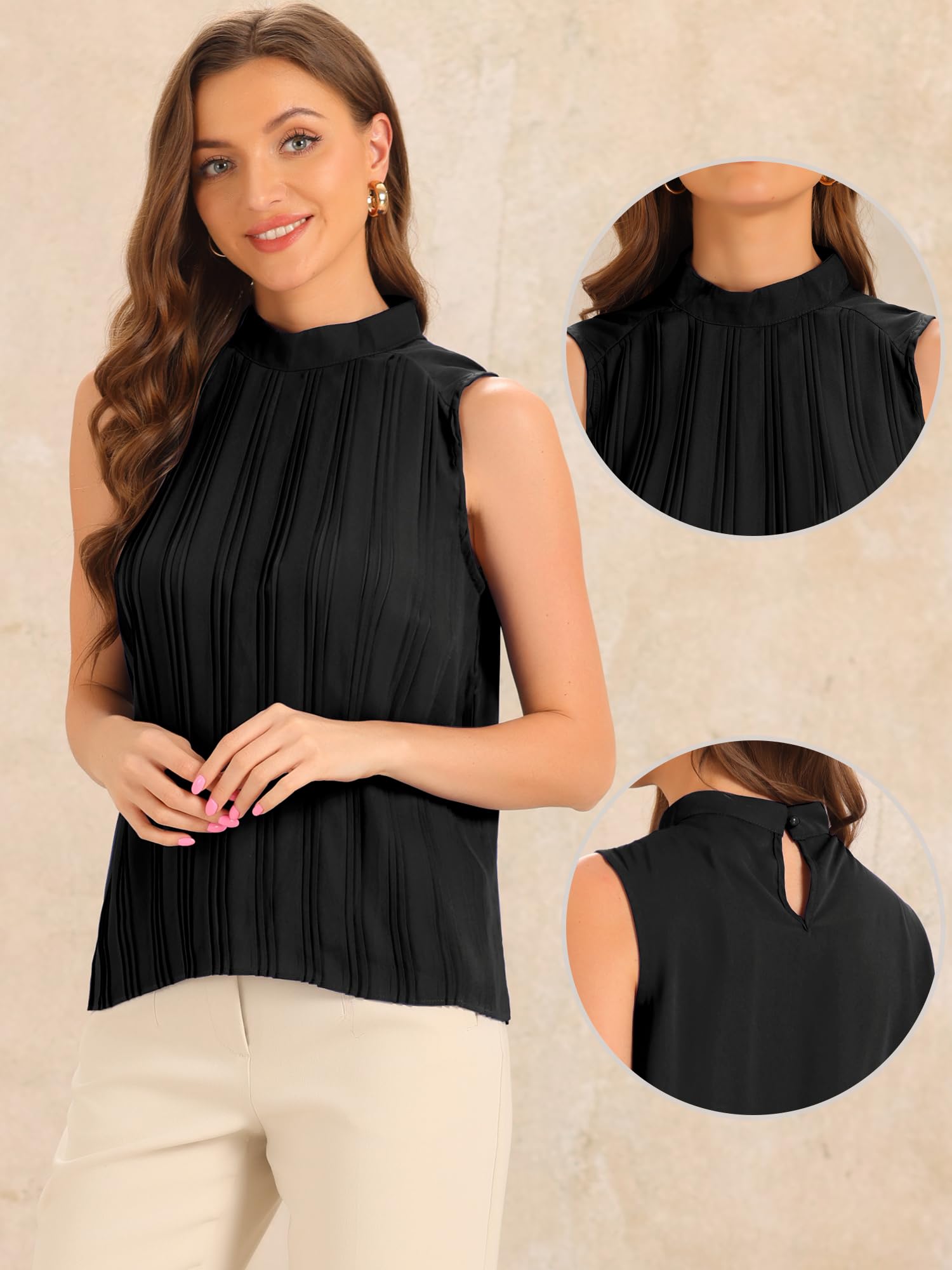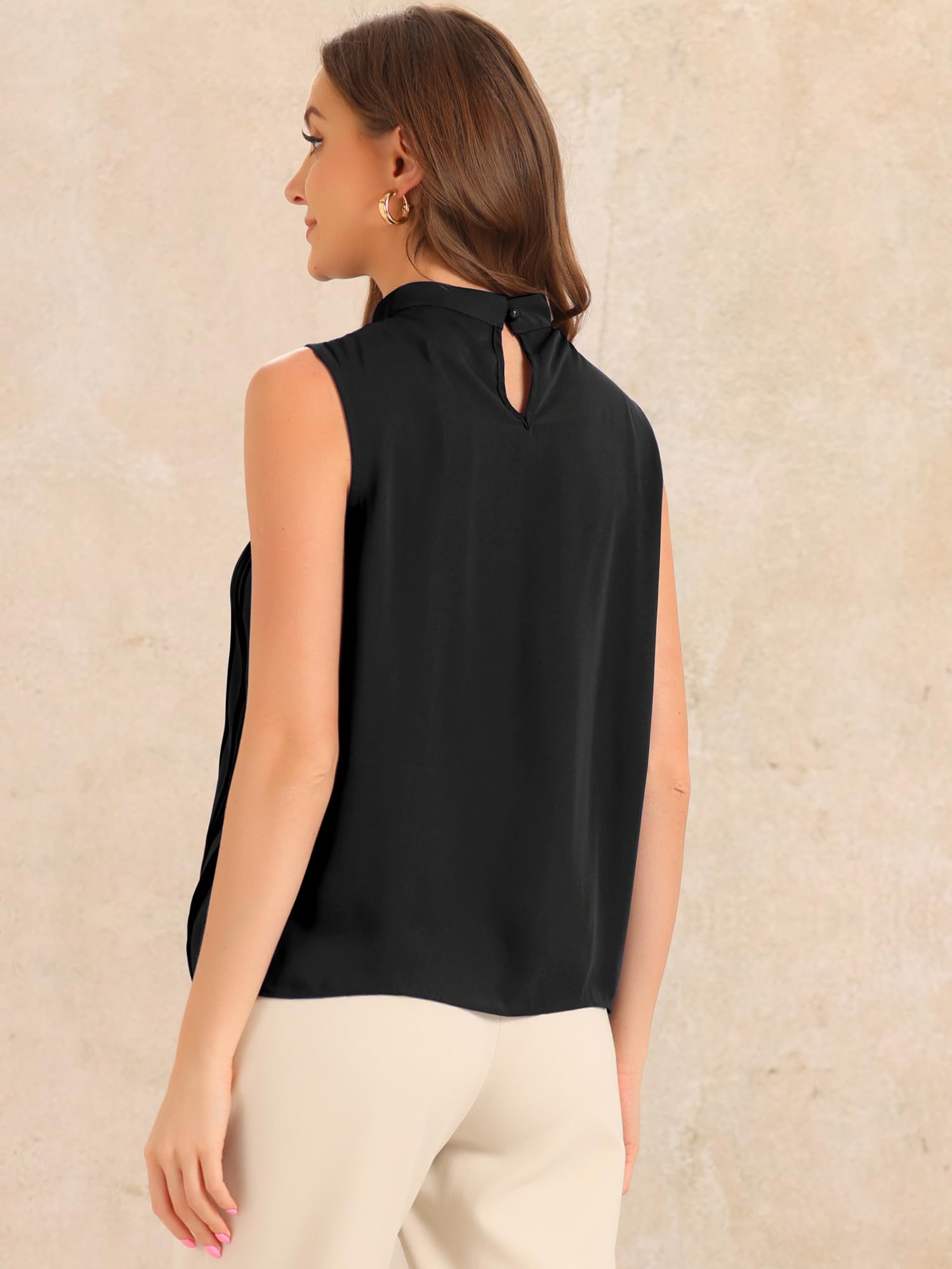 Top fara maneci Allegra K pentru femei, din sifon, casual, negru, M