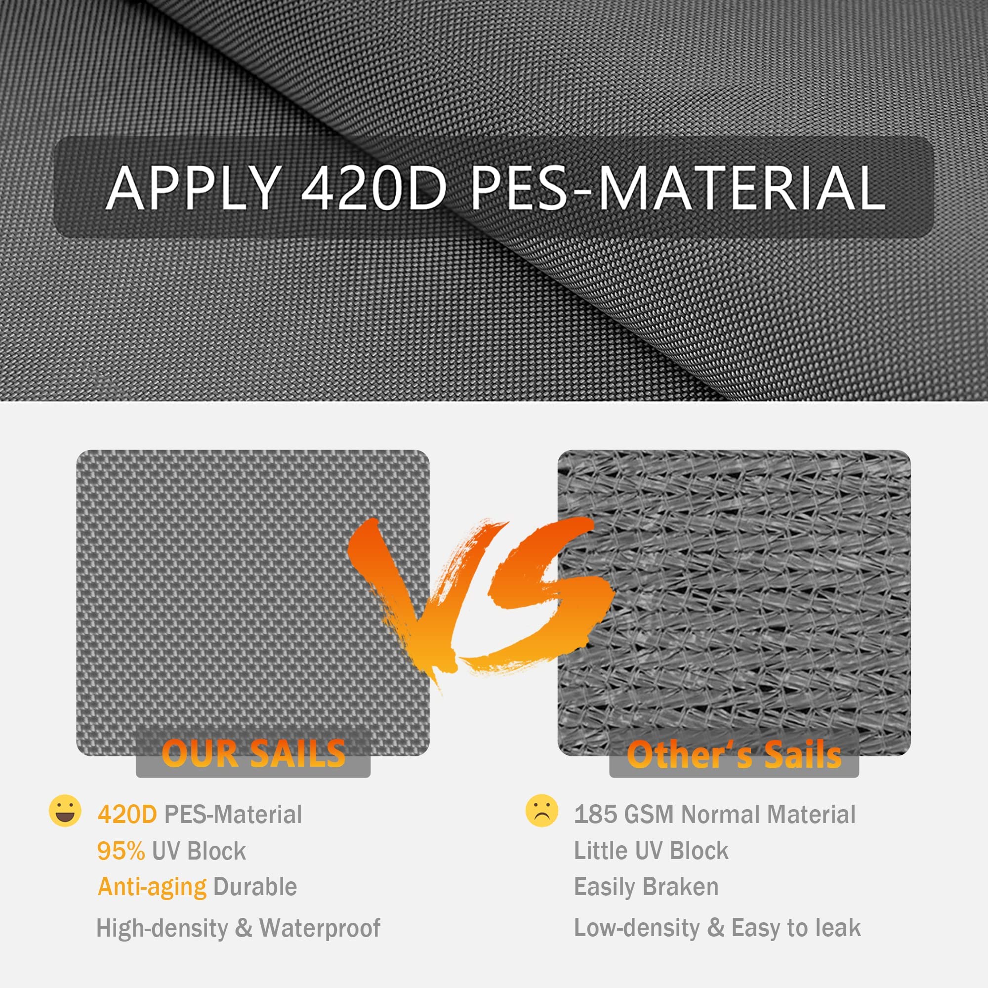 Vela de soare triunghiulara IOAOI 3x3x4,3 m, protectie UV 95%, include franghii de fixare, culoare gri