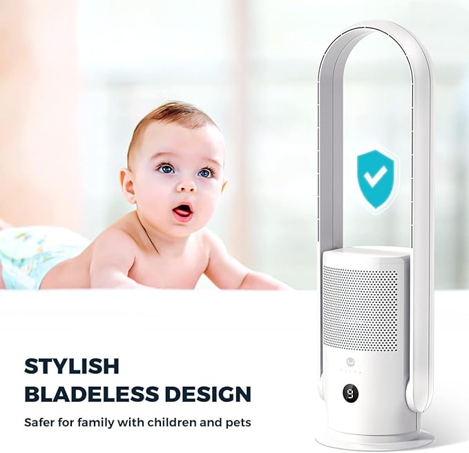 Tehnologia ventilatorului fără rotor: ventilatorul fără rotor distribuie eficient o circulație suficientă a aerului pentru a aduce fluxul de aer în camera dvs. mai rapid. Gata cu accidentele cu aripile care se rotesc rapid pentru copii și animale de companie. A creat o adiere super blândă, a oferit o răcire ultra-confortabilă și a fost, de asemenea, prietenos cu bebelușii.